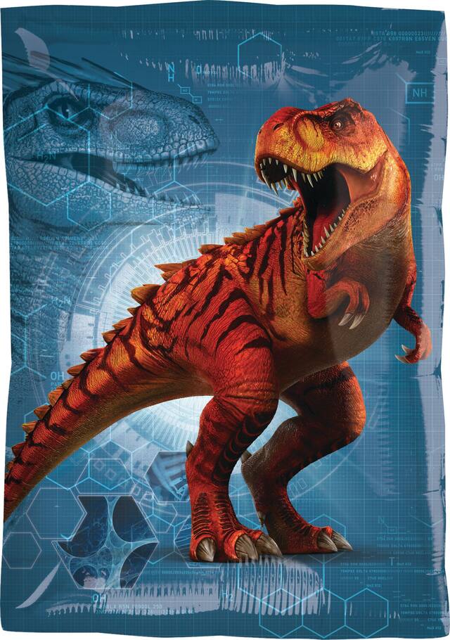 • Rectangular Jurassic World Balloon features Indominus Rex against on a green background on one side and a Trex against a blue background on the other side