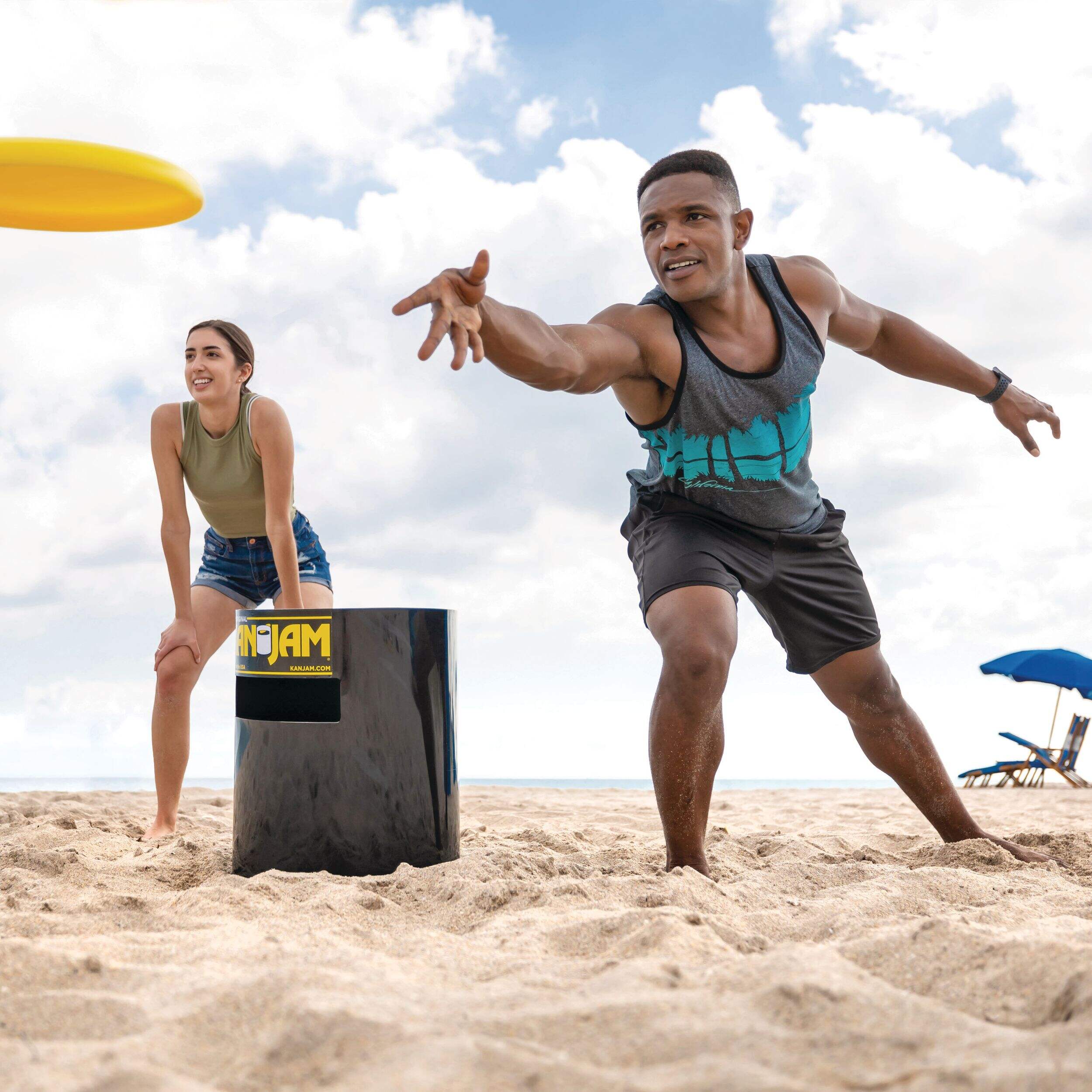 Includes (1) 11" (28 cm) official Kan Jam flying disc, (2) durable, high-impact official Kan Jam goals and (2) official Kan Jam labels