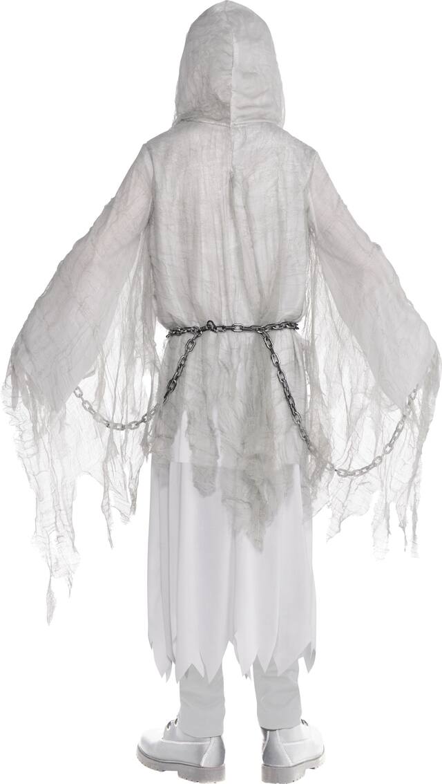 You may be interested in these similar products shown below.Child Creepy Spirit Ghost Costume features a white hooded robe with layers of tattered fabric and a jagged hem
