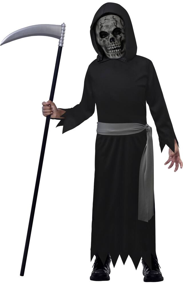 You may be interested in these similar products shown below.Kids' Death Reaper Costume includes a black robe, a grey skull mask, and a grey belt to spook everyone on Halloween