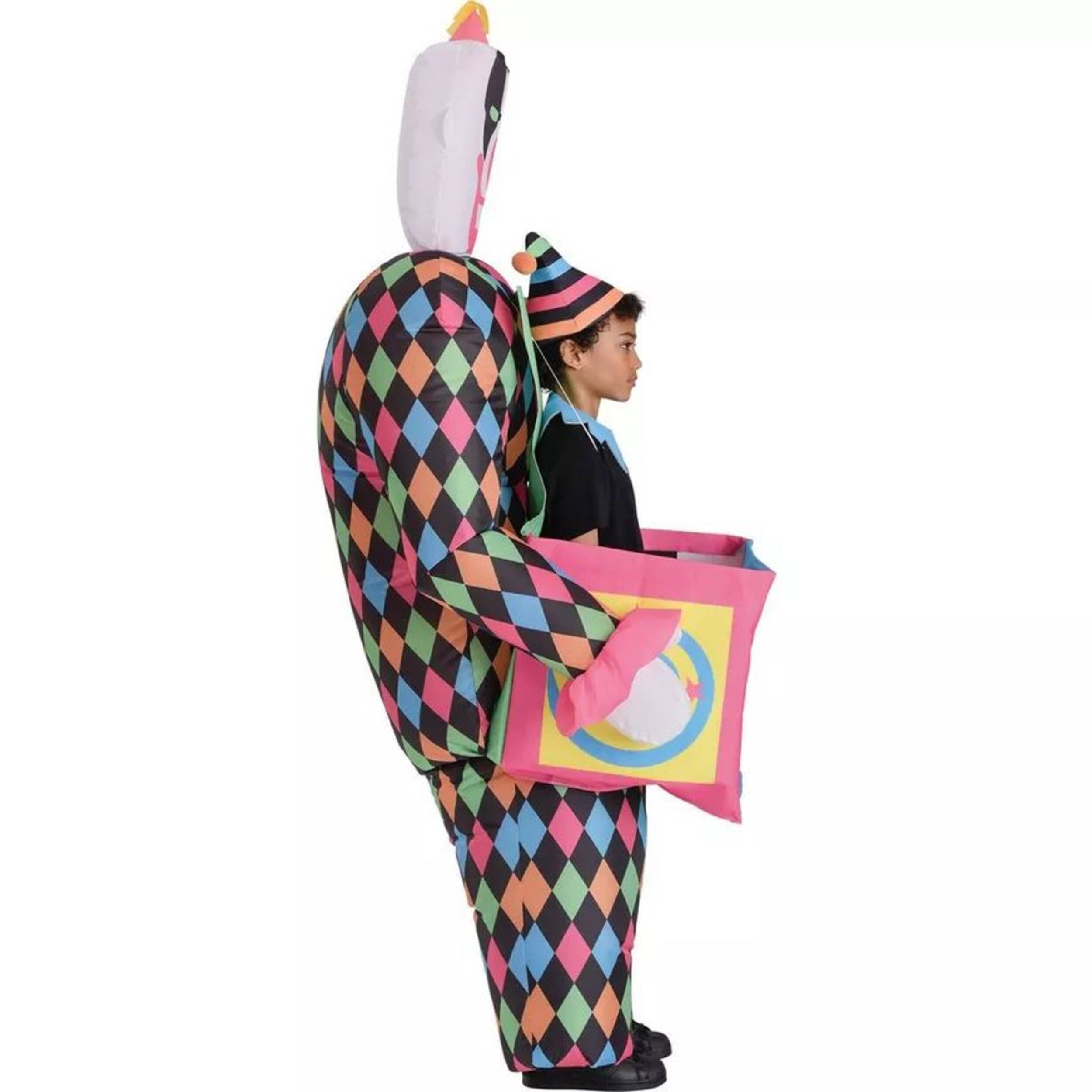 Transform into a whimsical character this Halloween with the Kids' Jack in a Box Clown Multi-Coloured Inflatable Costume. Perfect for children, this vibrant clown costume brings the classic toy to life, ensuring a fun and memorable experience. Ideal for parties and trick-or-treating, this inflatable costume will make your child the centre of attention.