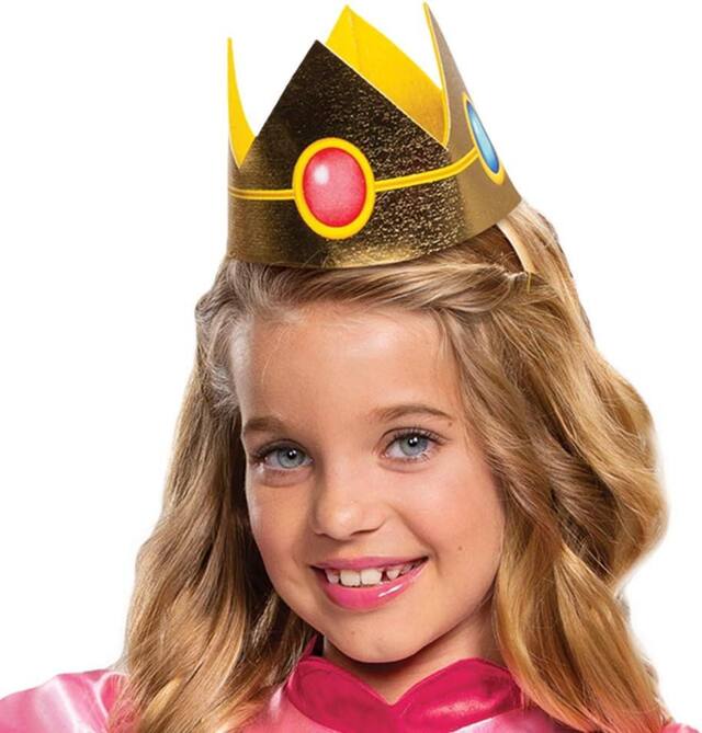 Transform your child into the beloved Princess Peach with this delightful Nintendo Super Mario Bros Halloween costume. Perfect for Halloween or dress-up play, this charming outfit includes a pink dress, petticoat, and a crown headband, ensuring your little one looks just like the iconic character.