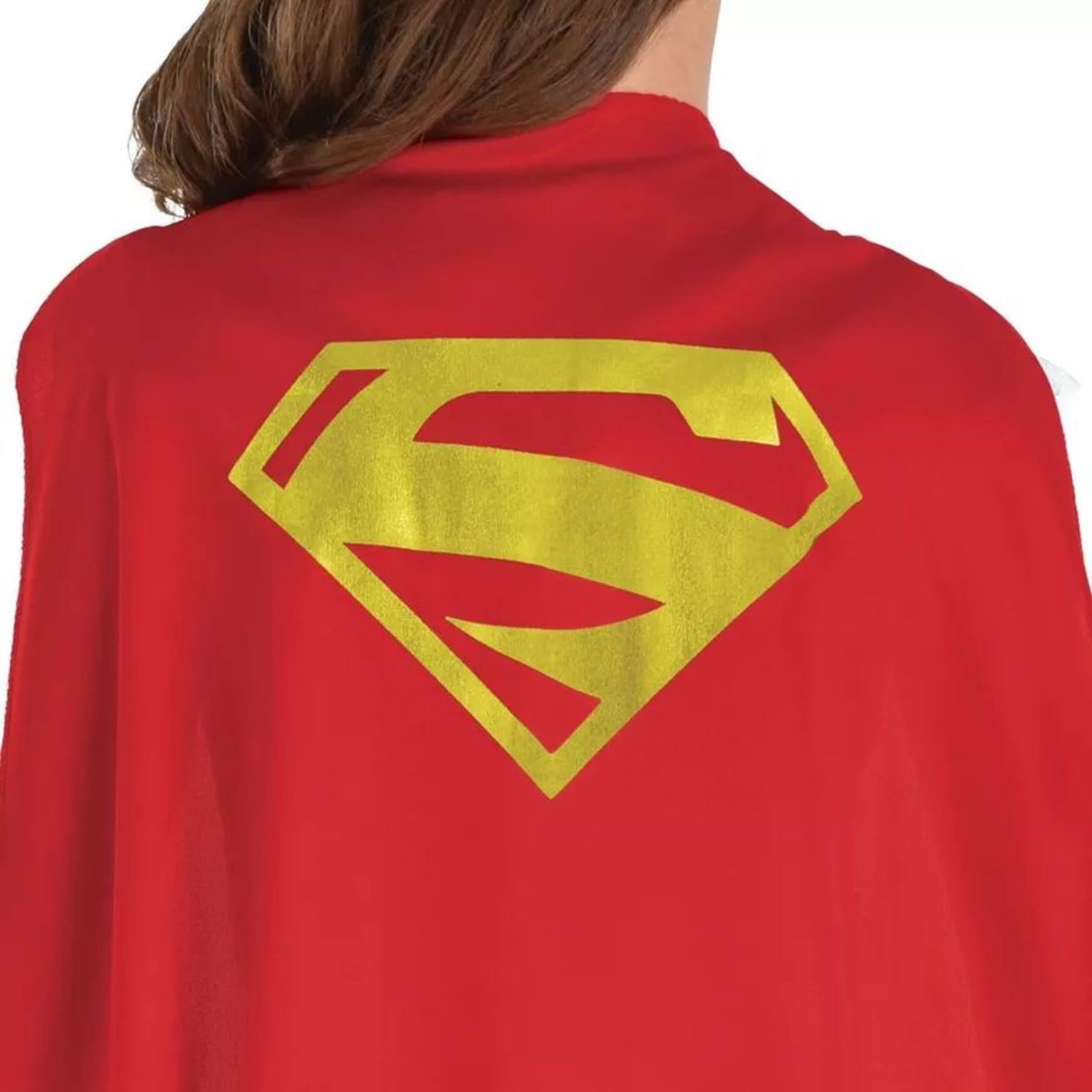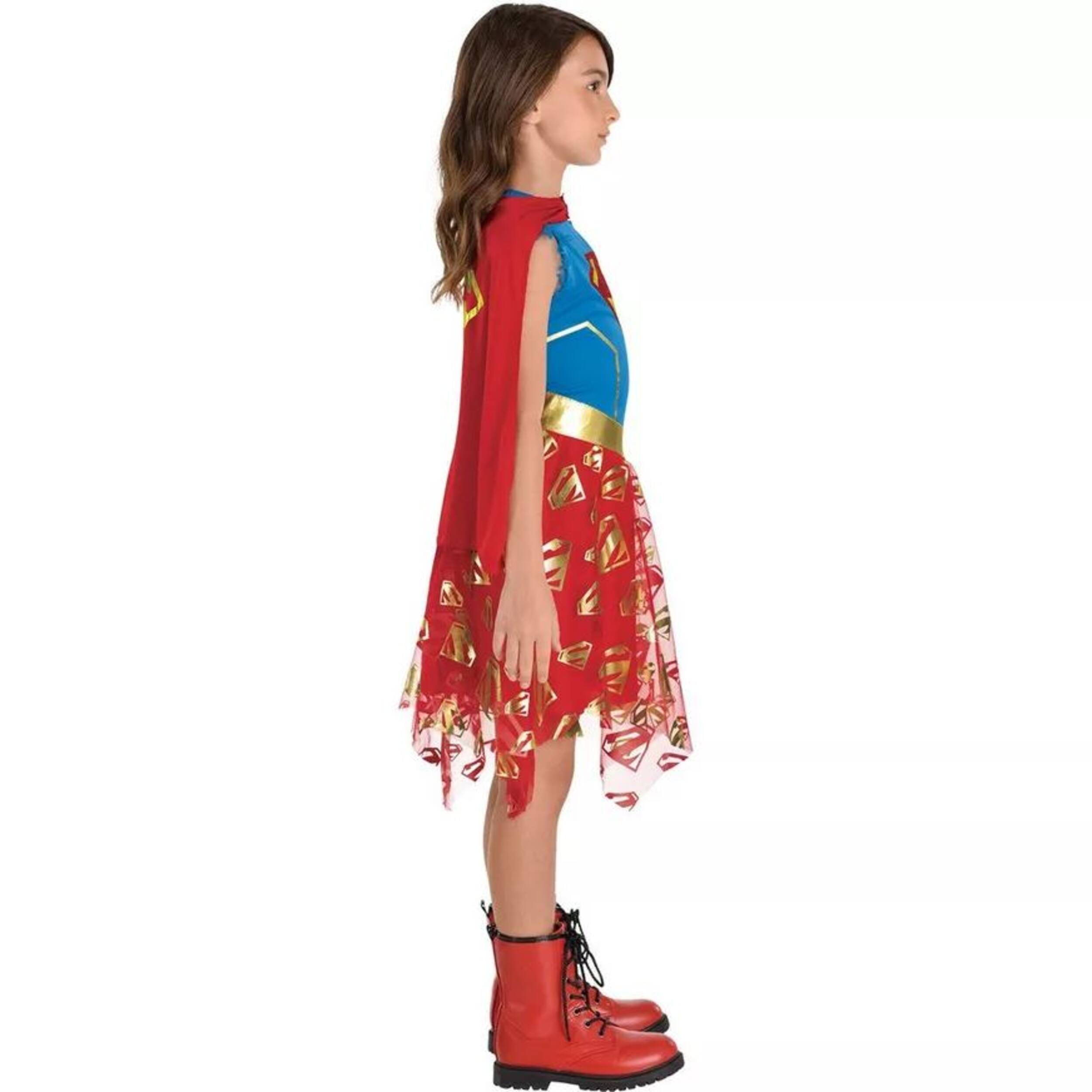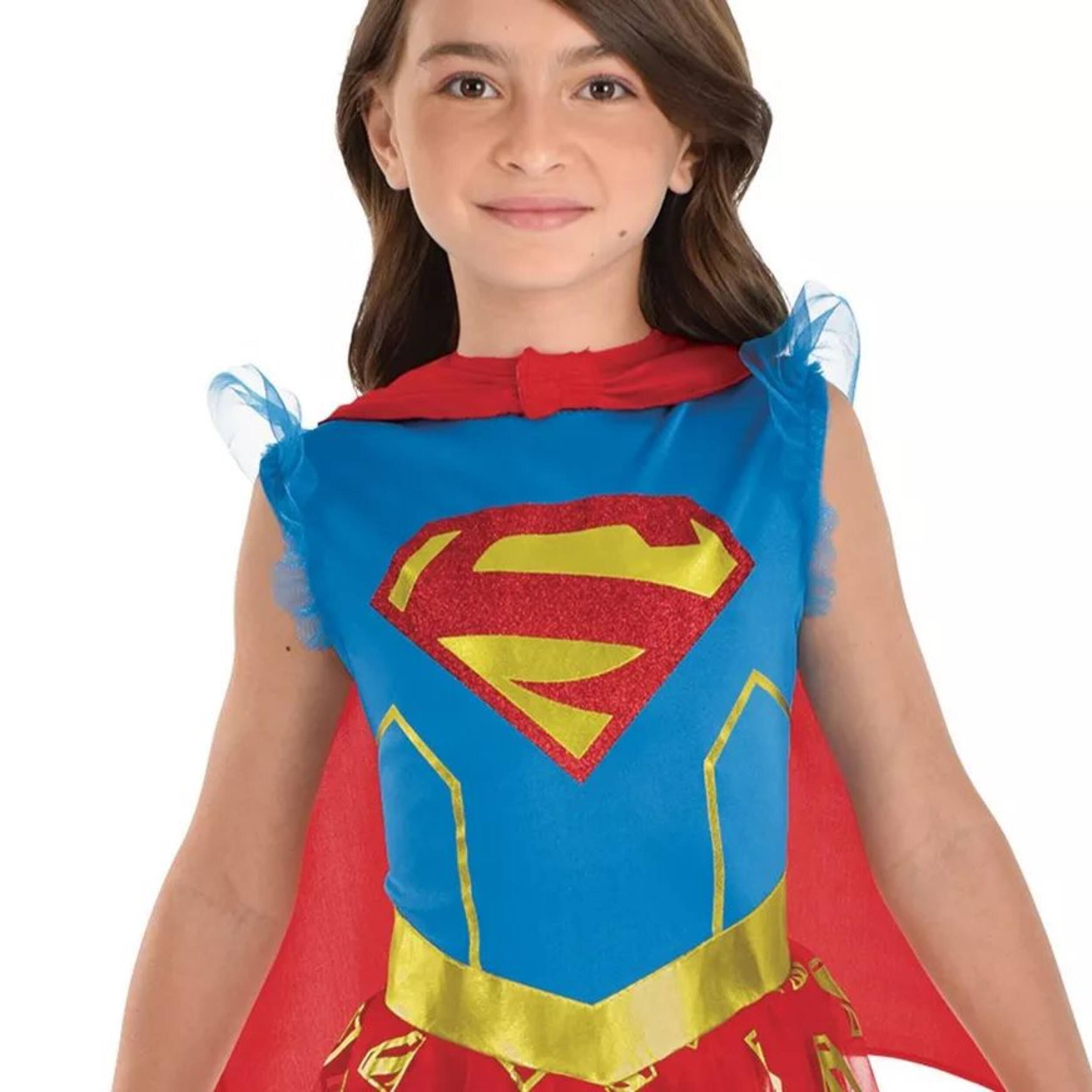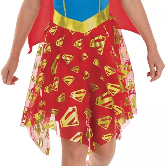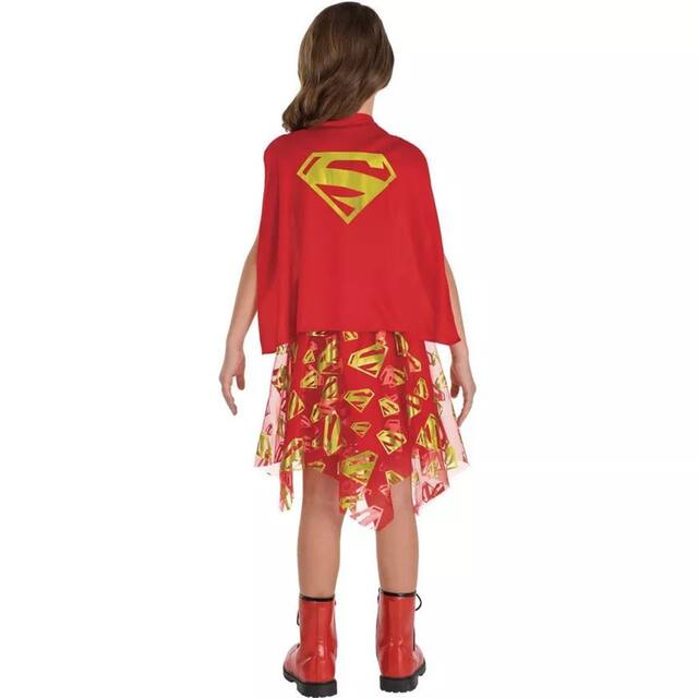 Transform your little one into a superhero with the Kids' Supergirl Dress and Cape Halloween Costume. This vibrant outfit features a striking red and blue dress, perfect for any aspiring Supergirl. The included cape adds an extra touch of heroism, making it an ideal choice for Halloween or dress-up play.