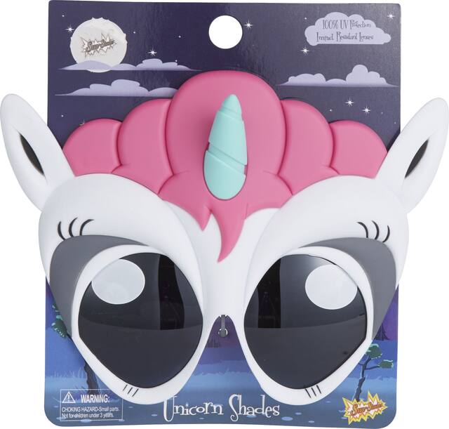 Get ready to sparkle and shine all day long in your Unicorn Wearable Sunglasses. Show off your bright pink mane and magical horn with these fun unicorn glasses. Make all your wishes come true and add a touch of magic to your unicorn costume or unicorn party.