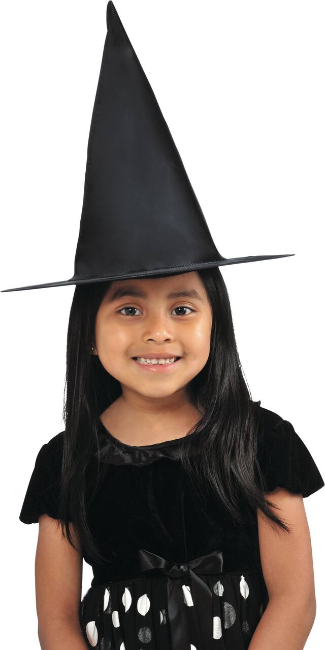 The Kids' Witch Hat features a classic conical design in stiff black fabric so it stays upright