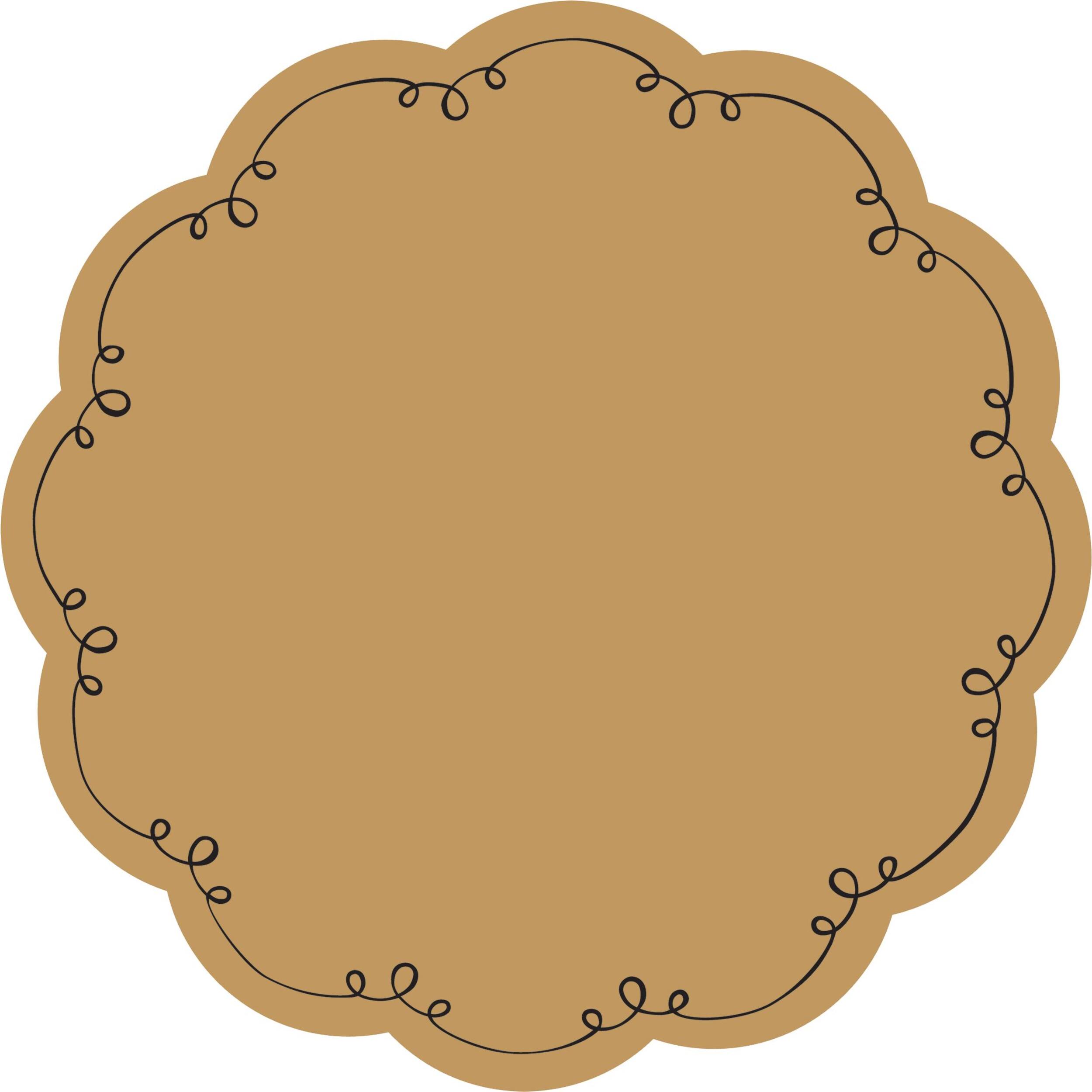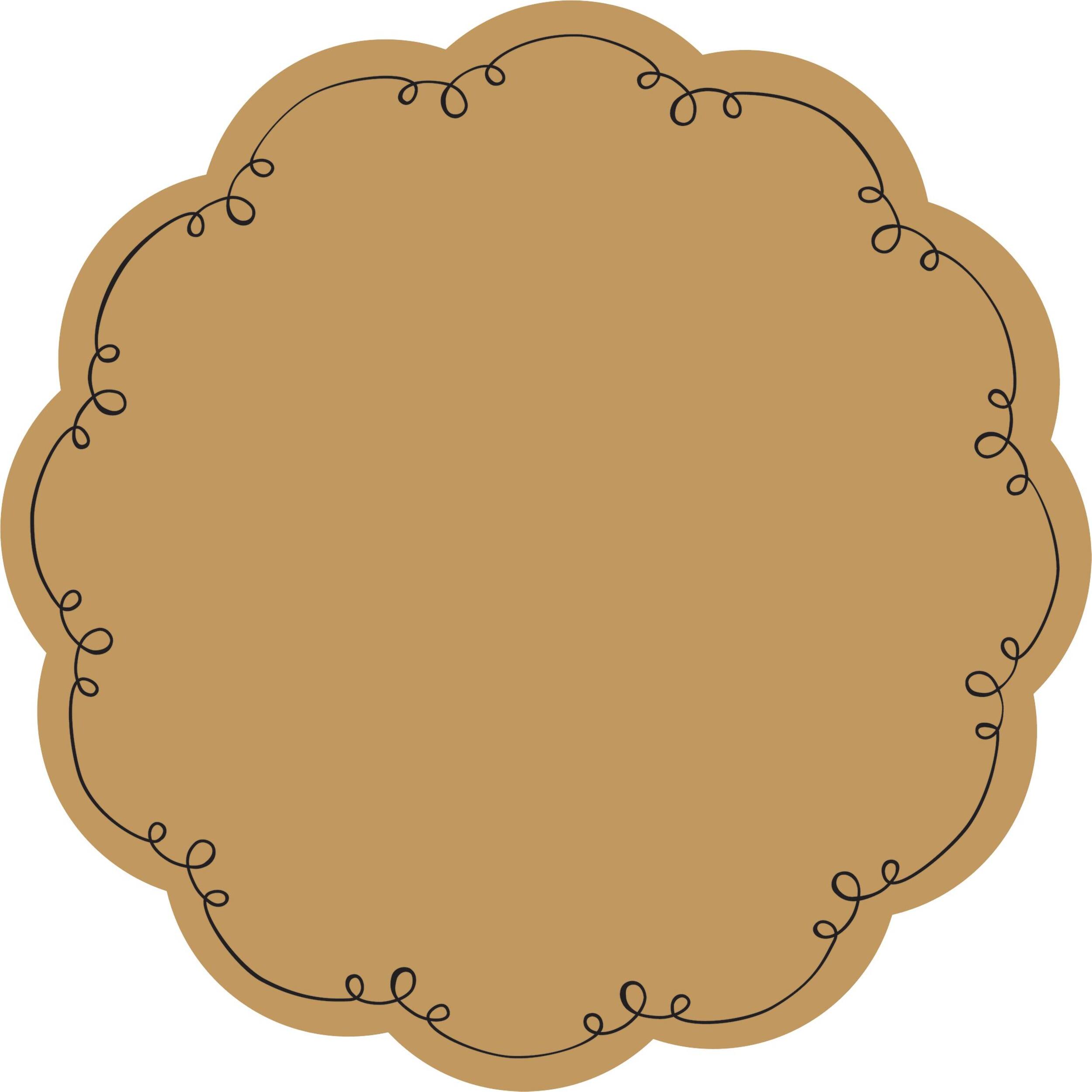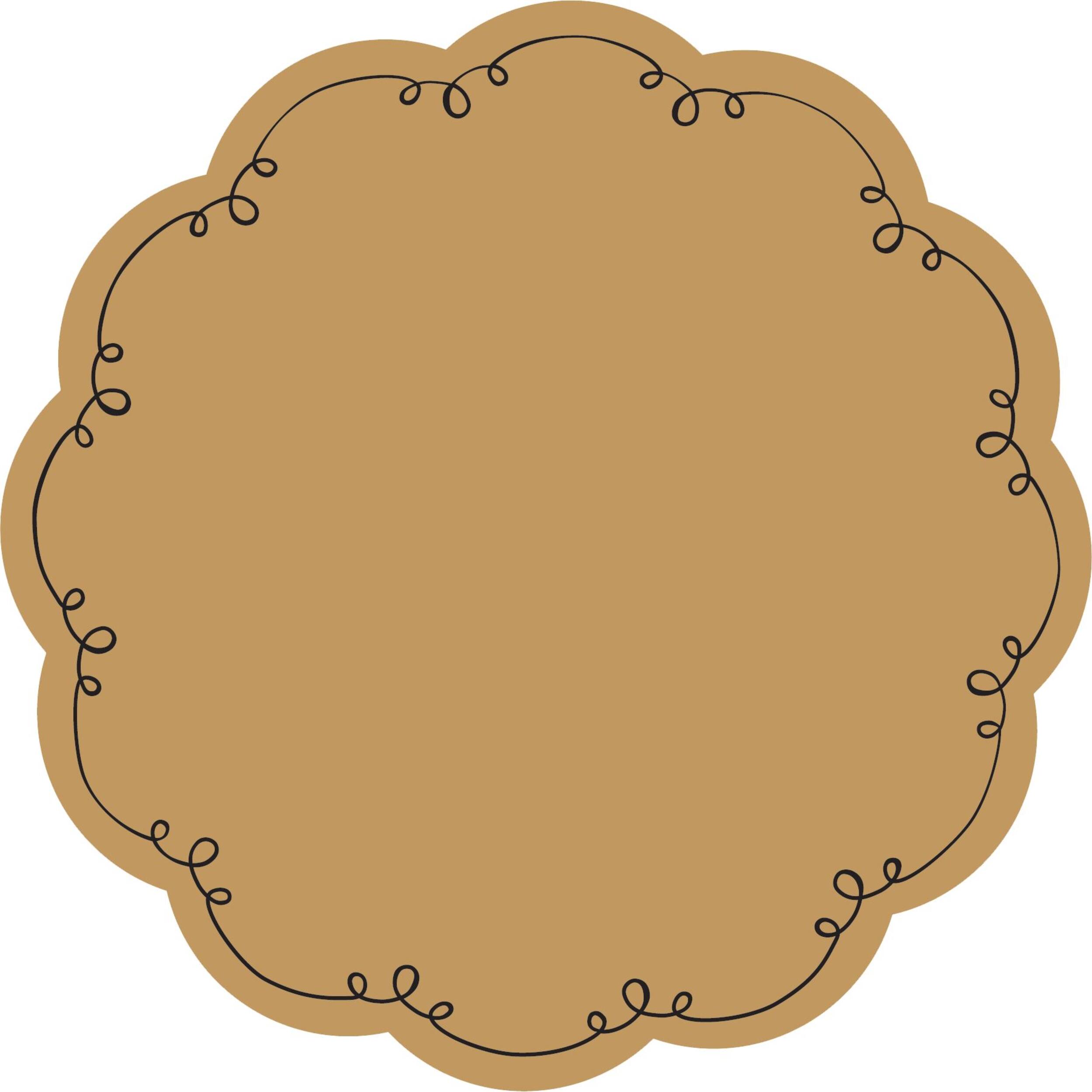 Brown kraft papers feature a printed black design on the scalloped border and can be written on with marker (sold separately) to specify what dish is being served