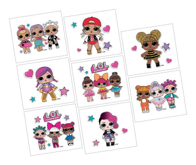 You may be interested in these similar products shown below.L.O.L. Surprise Tattoos are temporary, and feature images of popular L.O.L. Surprise dolls with stars, hearts and a lot of cute accessories that they are all wearing
