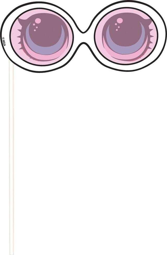 Single-sided plastic posters come with 12 fun photo props shaped like characters and accessories that the dolls wear