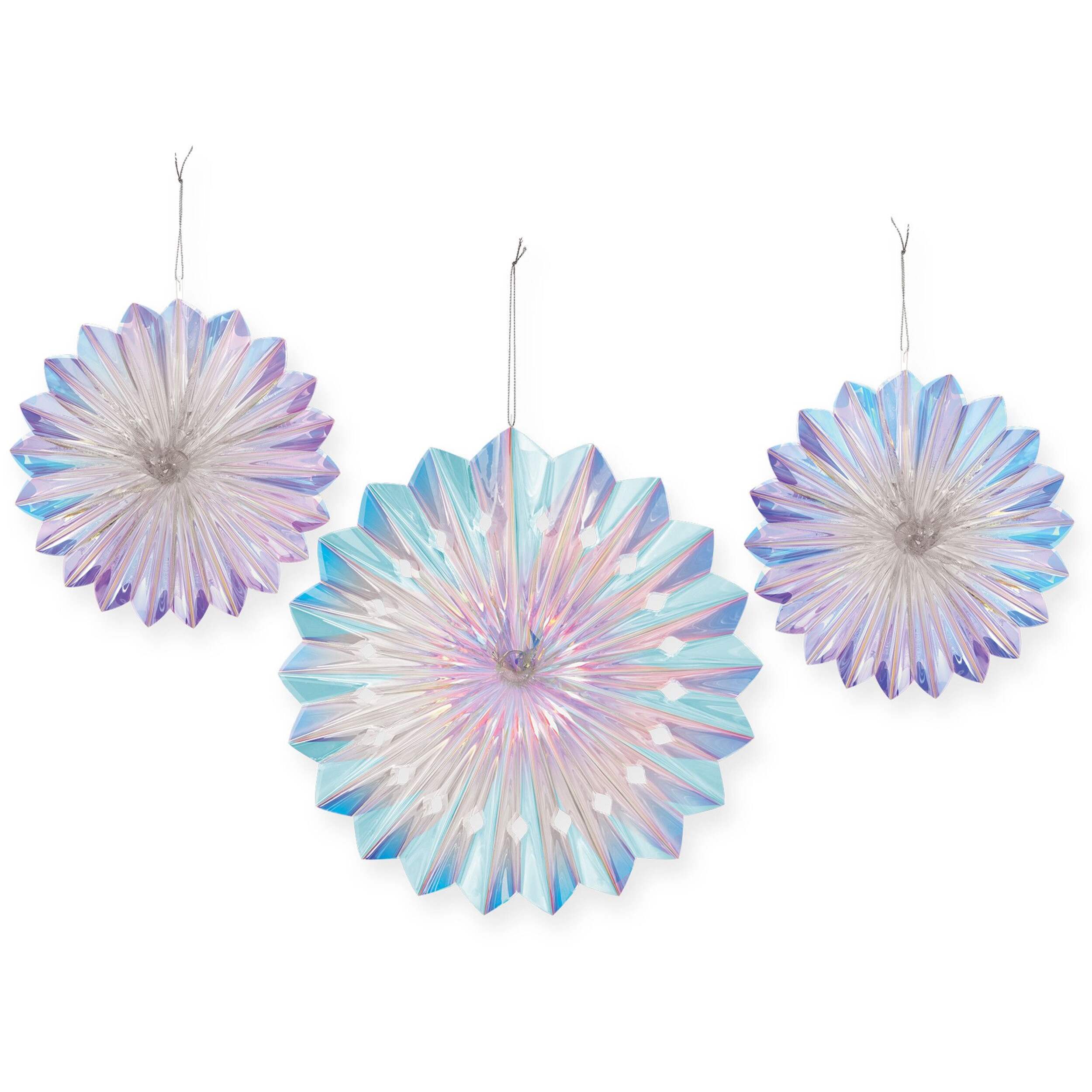 Add a touch of birthday party magic to your birthday celebration with these Luminous Fan and Star Iridescent Hanging Sign Decorations. Perfect for creating a stunning birthday photo backdrop, these birthday party decorations feature a beautiful iridescent finish that will make your party shine. Easy to assemble and hang, these party supplies are a delightful addition to any festive occasion.