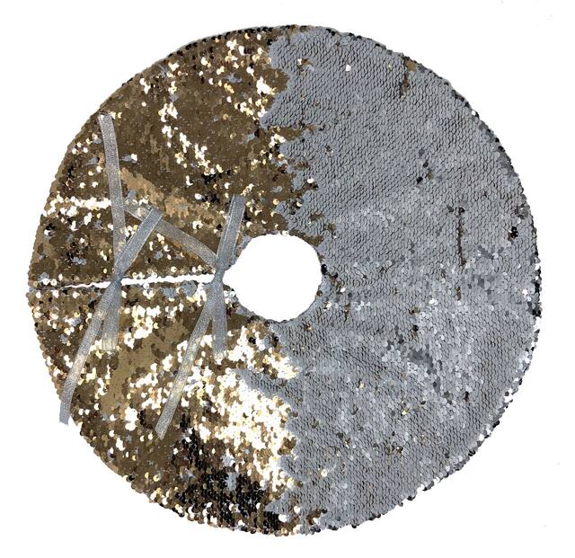 Magic Swipe Gold Silver Tree Skirt will bring the holiday spirit into your home