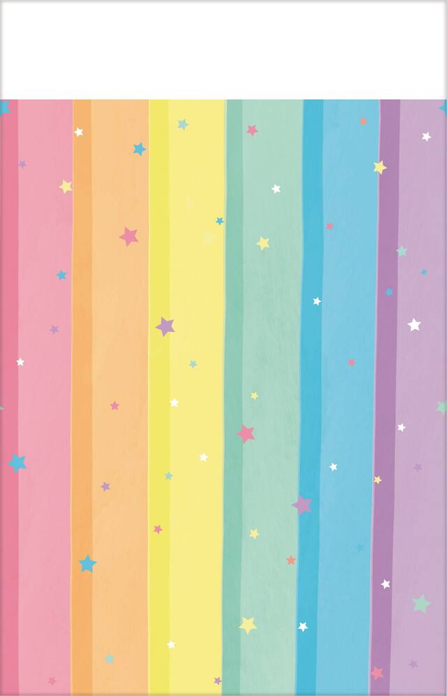 You may be interested in these similar products shown below.Magical Rainbow Table Cover features a striped rainbow pattern along the border and a blank centre