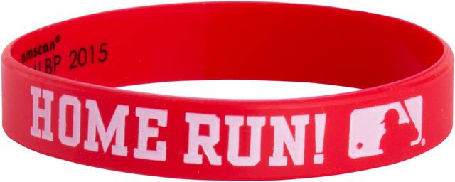You may be interested in these similar products shown below.These sporty wristbands make a perfect accessory at your next baseball viewing party or game day gathering. The pack includes 12 rubber bracelets featuring the official logos and slogans of America's pastime. With red and blue bands printed with "Play Ball" and "Home Run", these skin-safe wristbands are ideal party favors, giveaways or stocking stuffers for the baseball fan in your life. Made from quality rubber that will stand up to the rigors of washing machines and playgrounds alike.