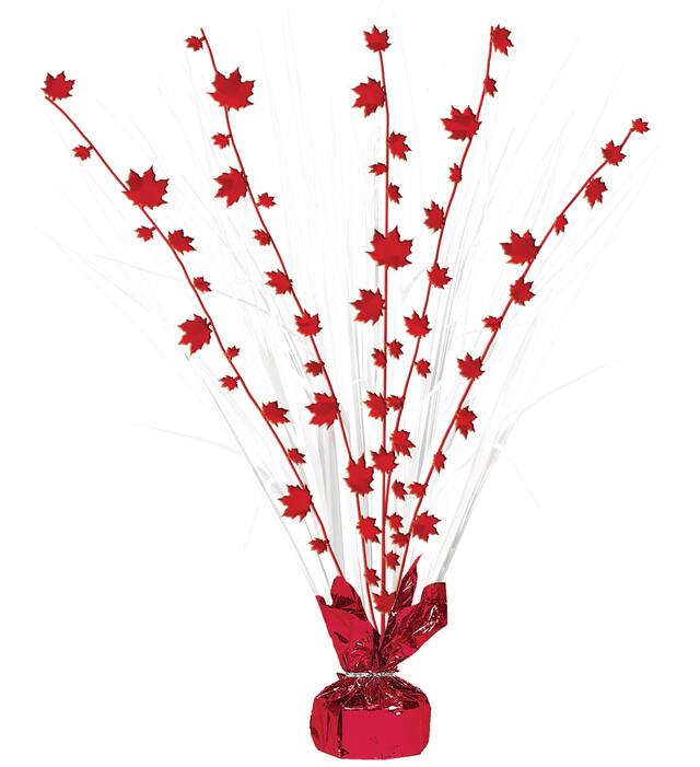 Celebrate Canada Day in style with this eye-catching Maple Leaf Metallic Tinsel Spray Burst Centerpiece. Perfect for adding a festive touch to your table, this decoration features vibrant red and white colours and charming maple leaf accents. Make your holiday gathering memorable with this dazzling centerpiece.
