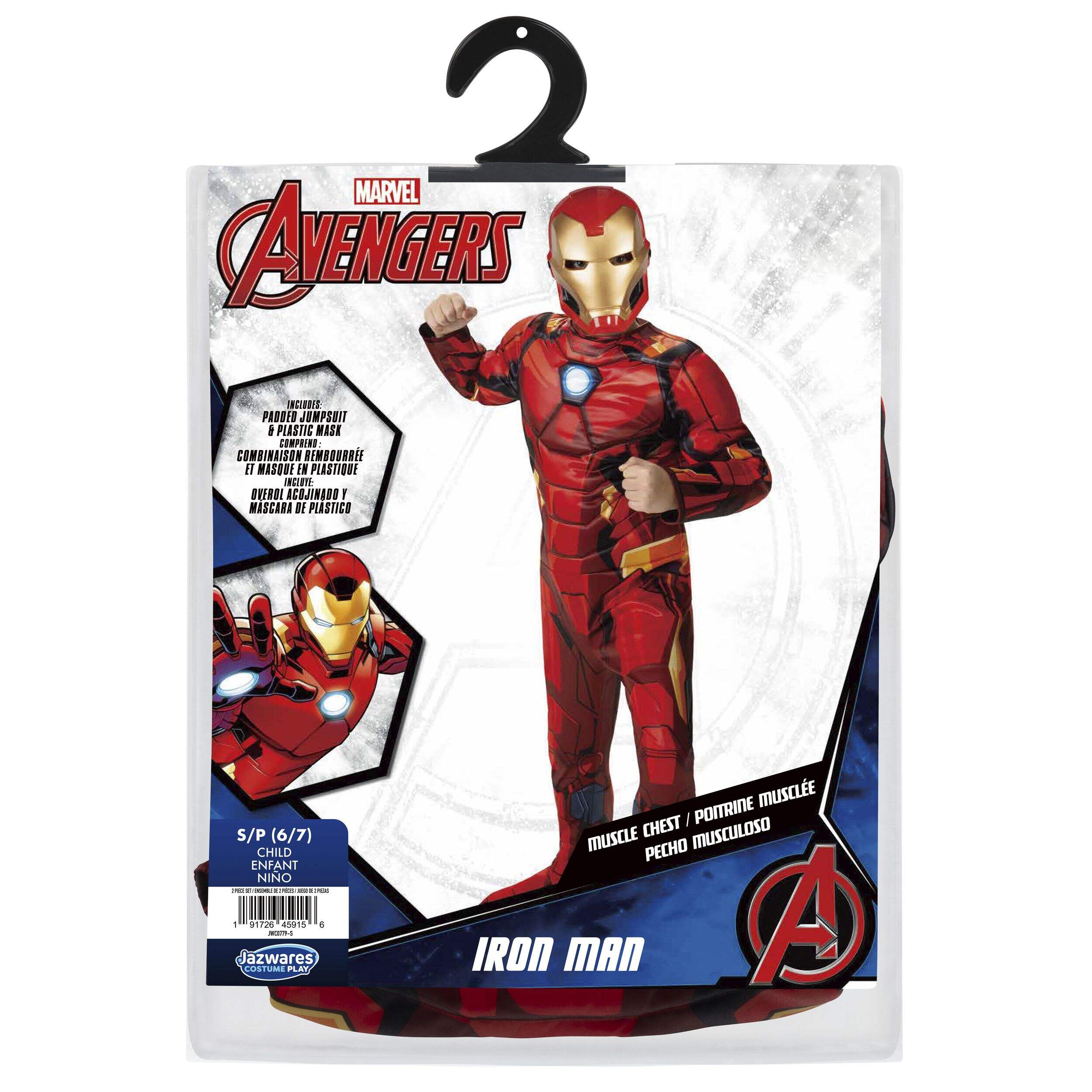 Join the Avengers in the Marvel Iron Man official youth Halloween costume. Inspired by Tony Stark's latest tech, this fabric jumpsuit features a high-resolution printed design and closes with a hook and loop fastener. It also includes a plastic mask with open eye holes. All superhero costumes are made from high-quality fabric with high-resolution prints. Jazwares Costume Play creates costumes for Halloween and everyday play that are made for every member of the family. Officially licensed Marvel product from Jazwares.