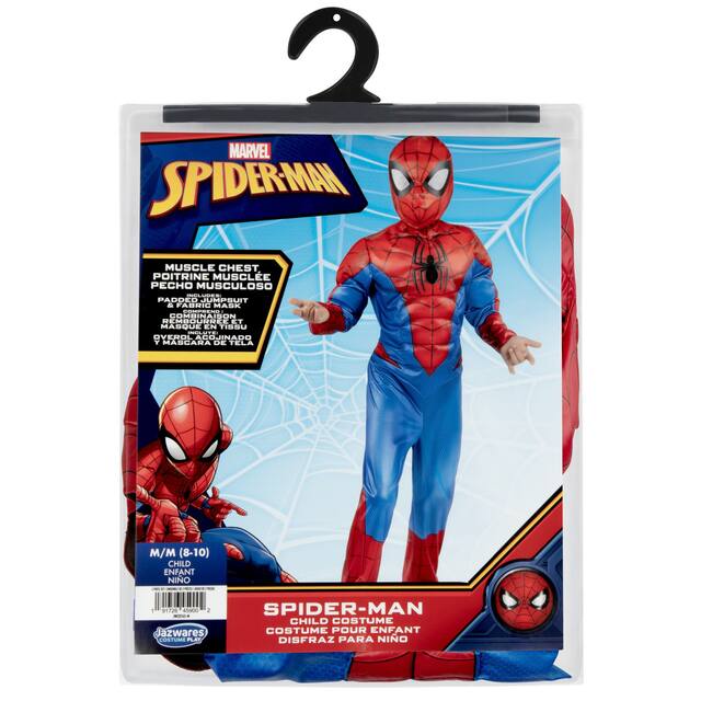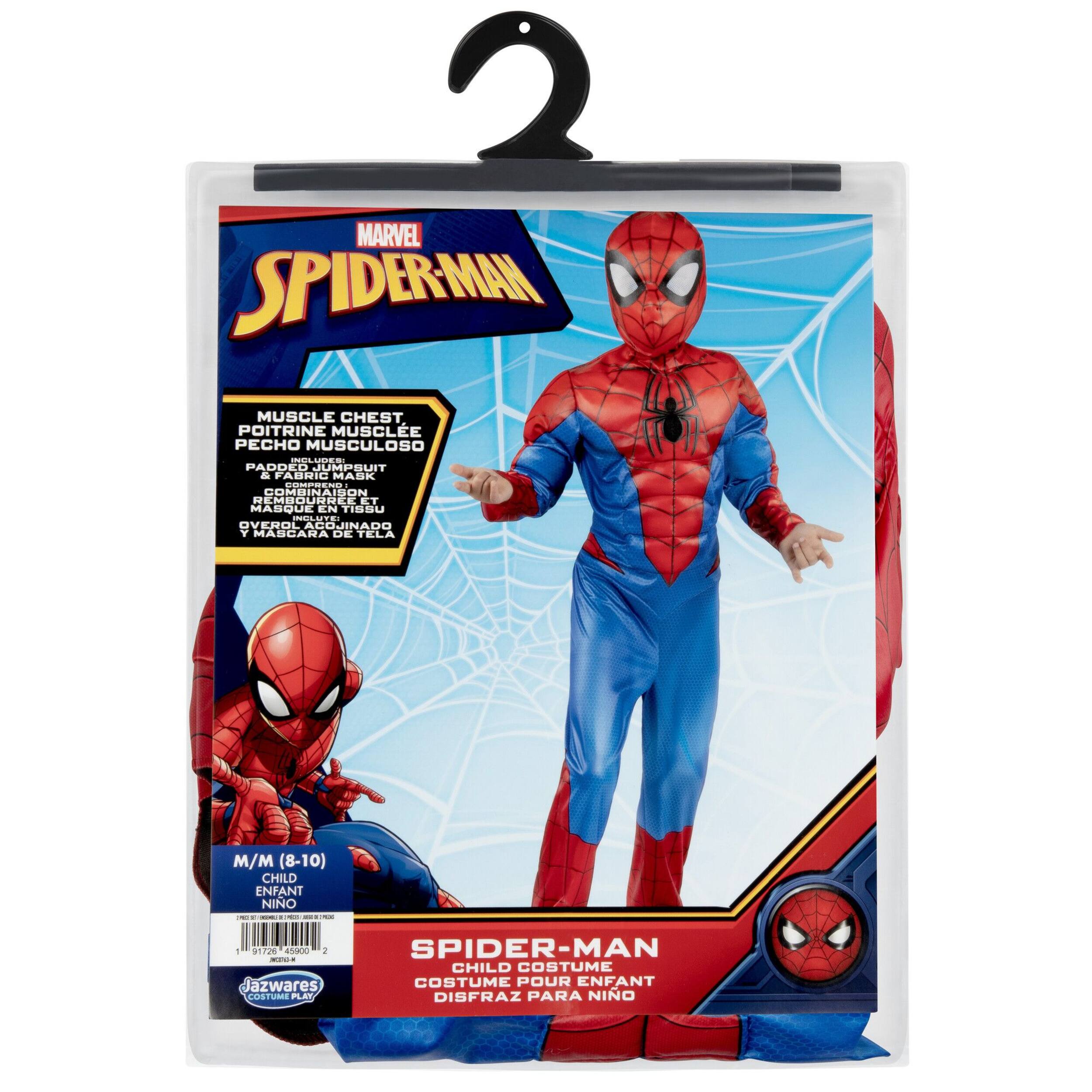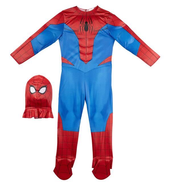 Swing into action with the Marvel Spidey official youth deluxe Halloween costume. Featuring a graphic design of Peter Parker’s classic suit, this printed jumpsuit includes padding in the chest and arms and closes with a hook and loop fastener. It also includes a fabric headpiece with a foam interior and an elastic strap. All superhero costumes are made from high-quality material with high-resolution prints. Jazwares costume play creates Halloween fun for every member of the family. Officially licensed Marvel product from Jazwares.