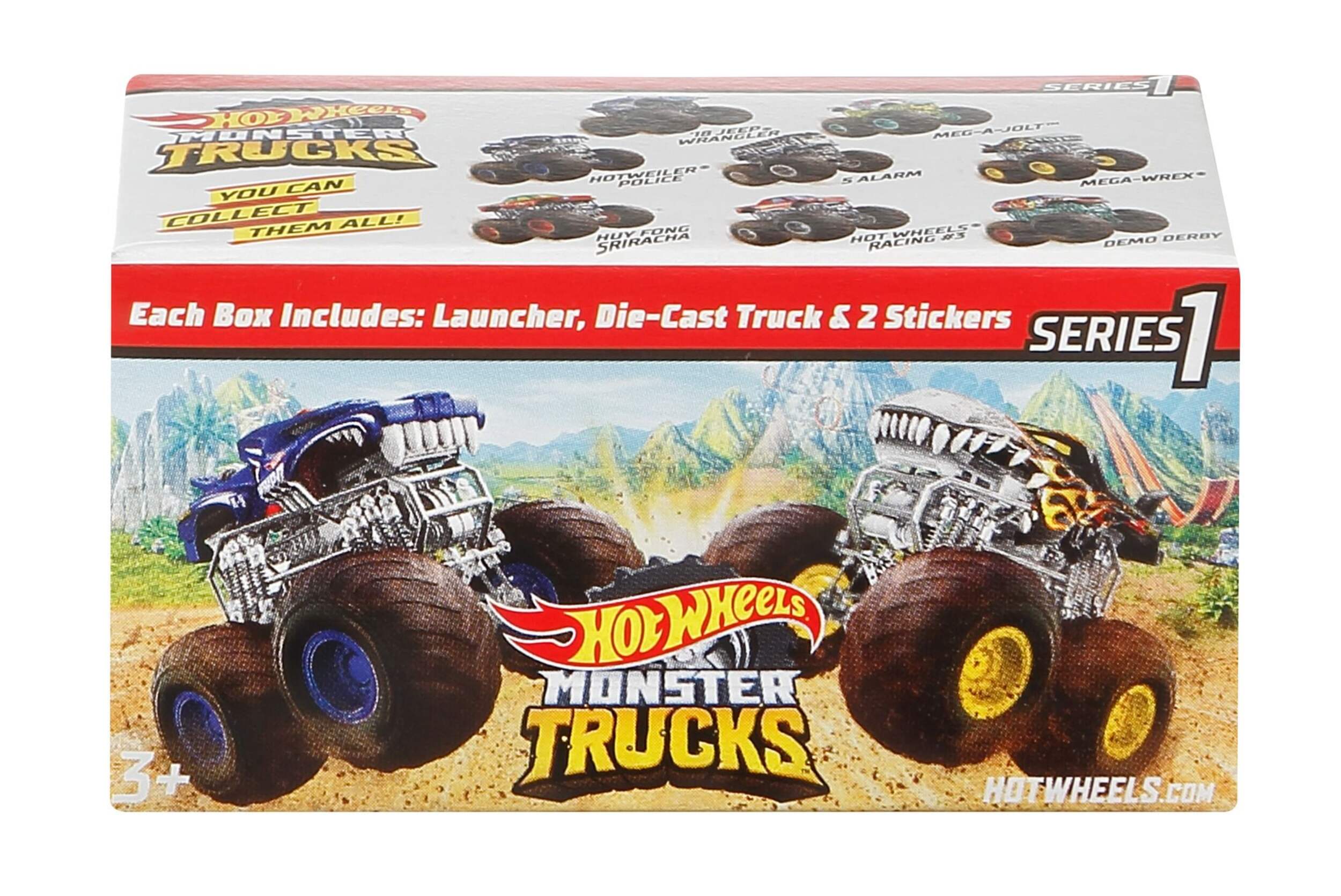 Includes 1 Hot Wheels® Mini Monster Truck, a launcher, and a sticker