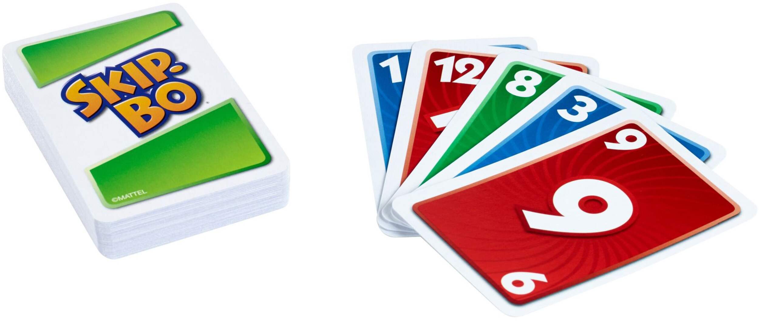 Mattel Skip-Bo Sequence Strategy Card Game, Blue/Green/Red/Yellow, Players 2-6, 126-pk, Ages 7+, for Birthday/Party Favour