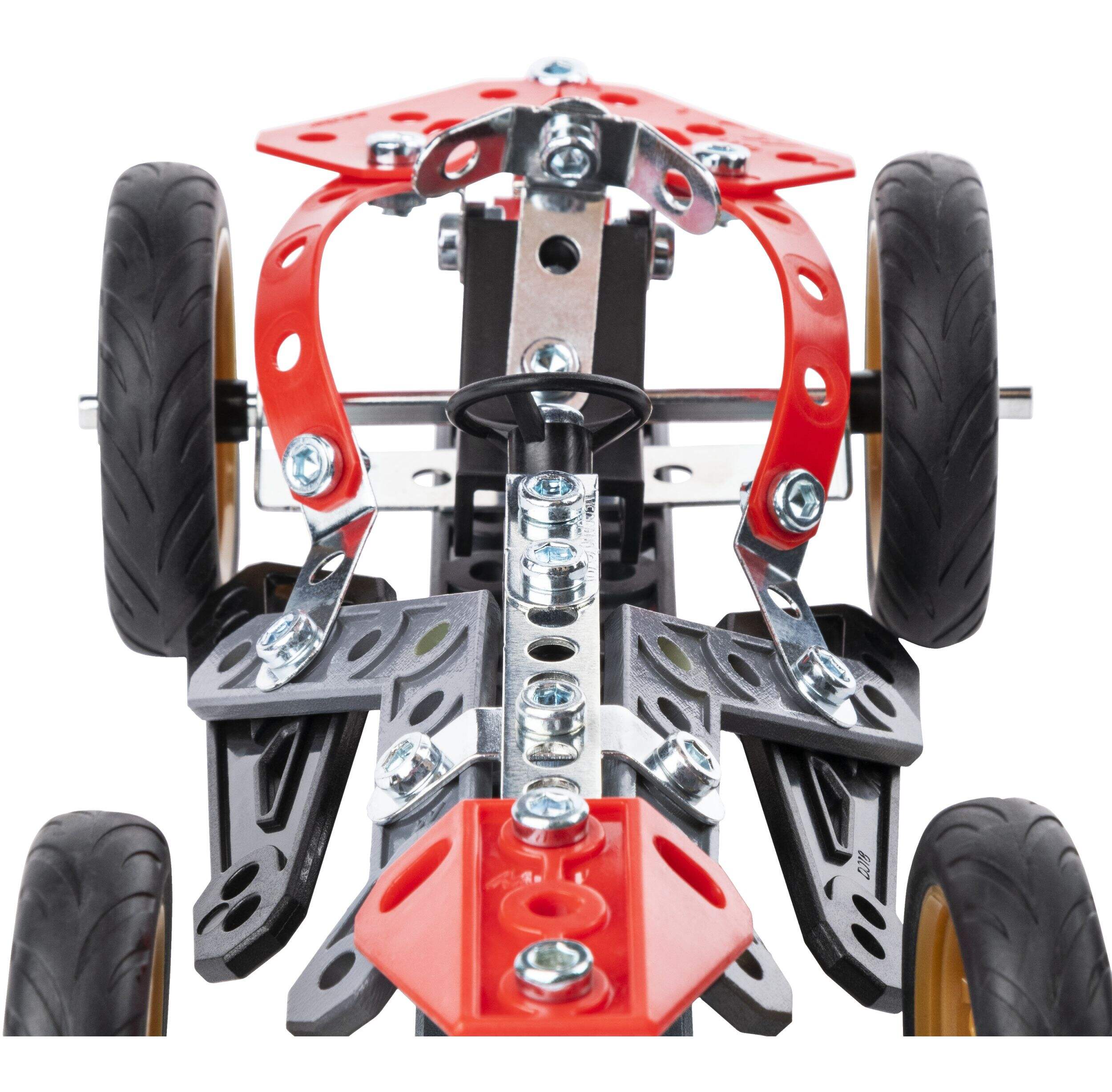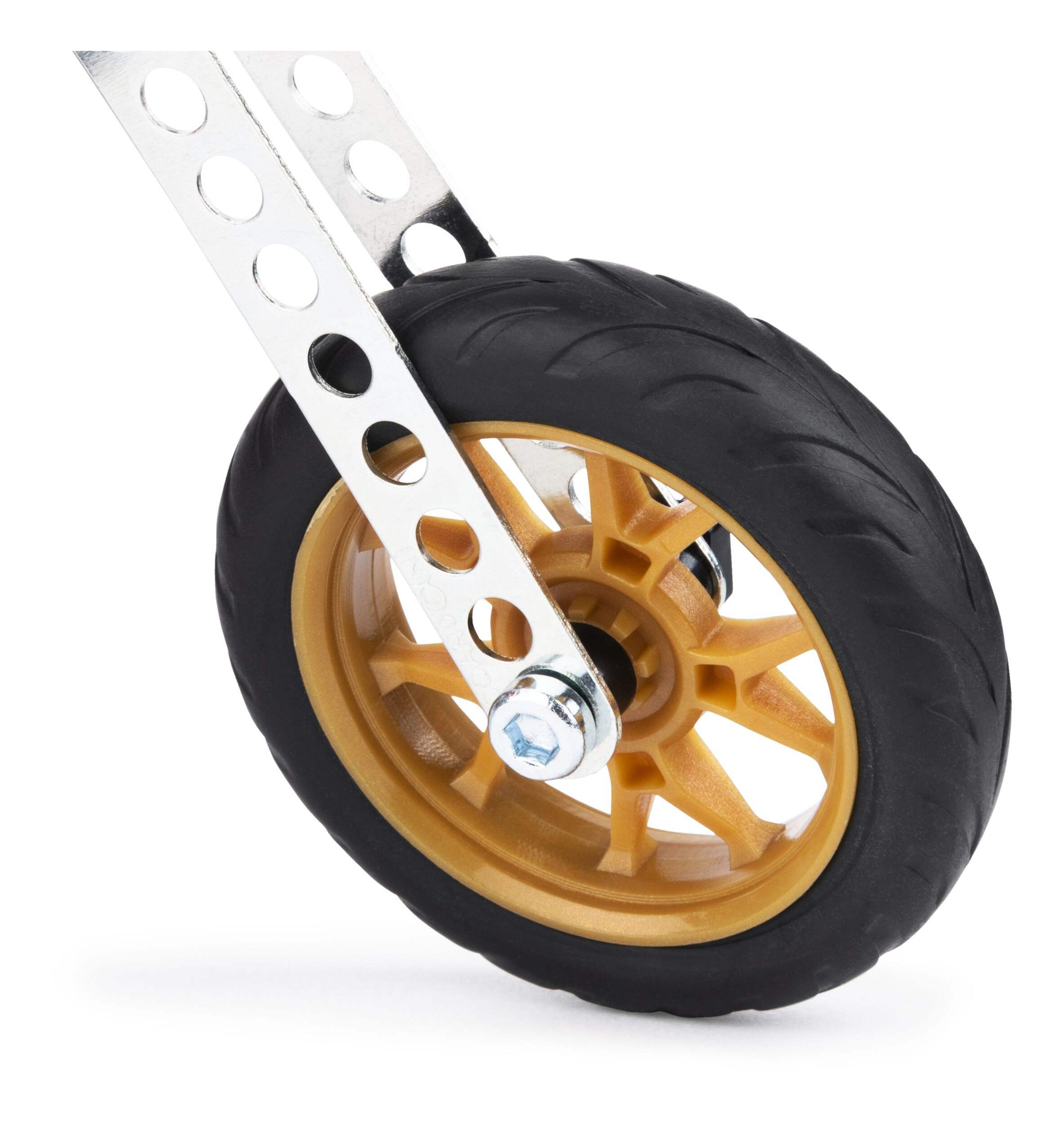 For an authentic building experience, use the 2 handy tools, wheels and durable real metal nuts and bolts (all included)