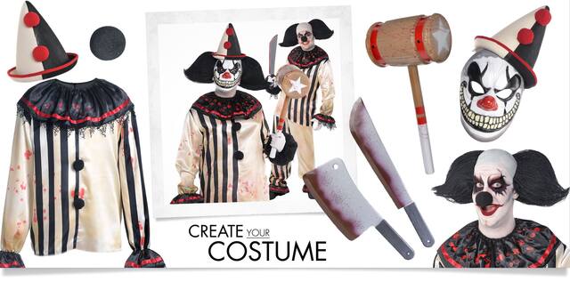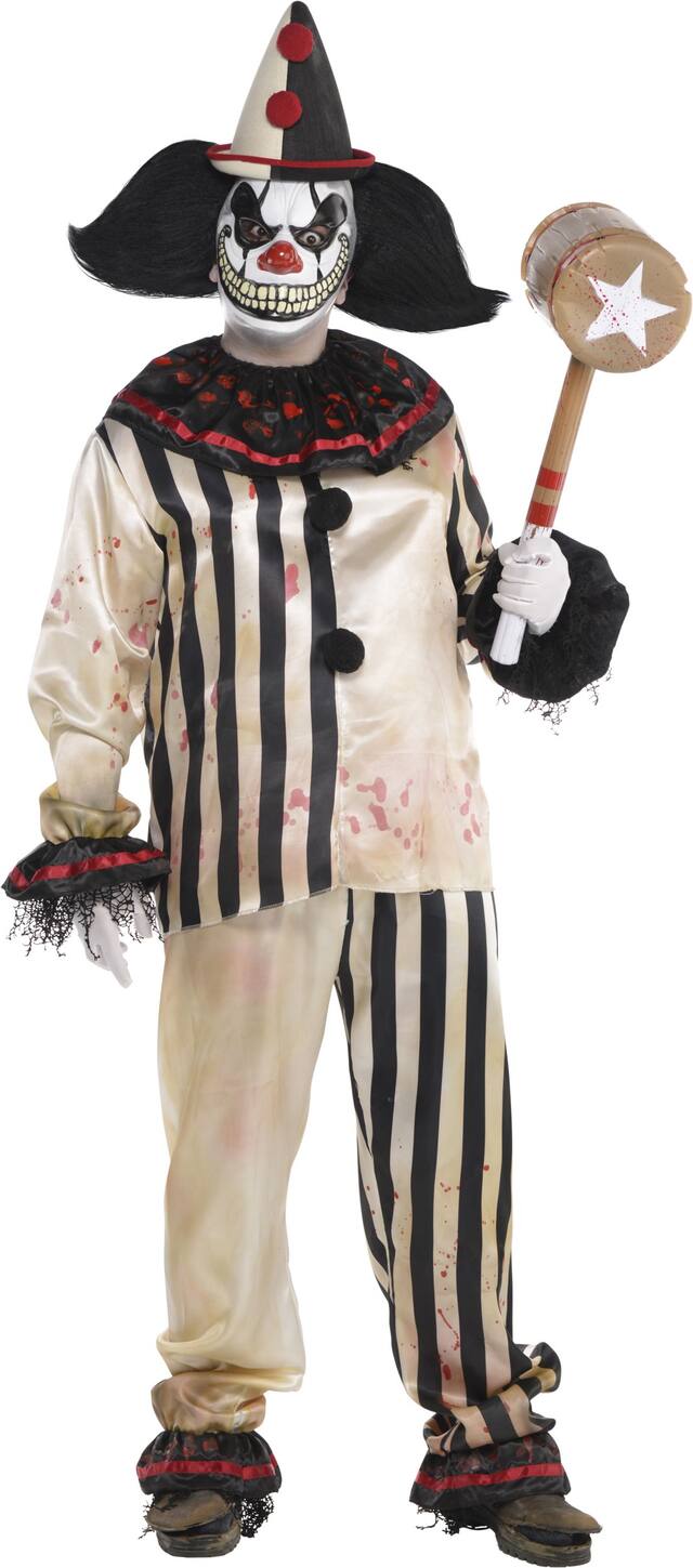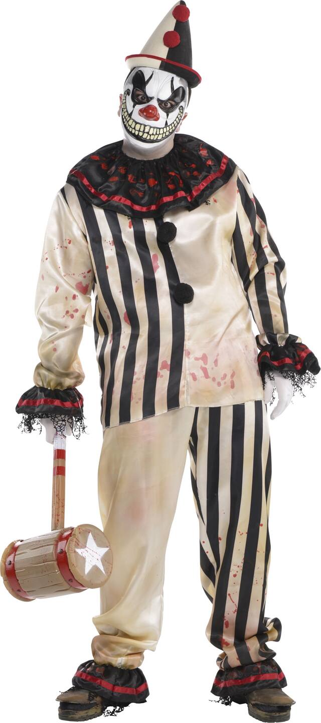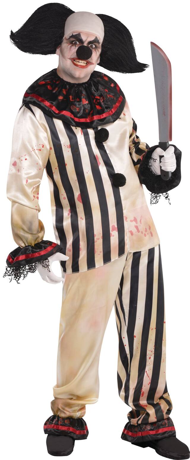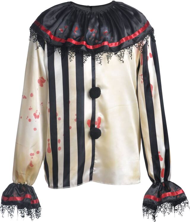 You may be interested in these similar products shown below.Bloody Freak Show Clown Shirt and Pants gives everyone the creeps this Halloween! Matching top and pants have alternating sides with black and white stripes