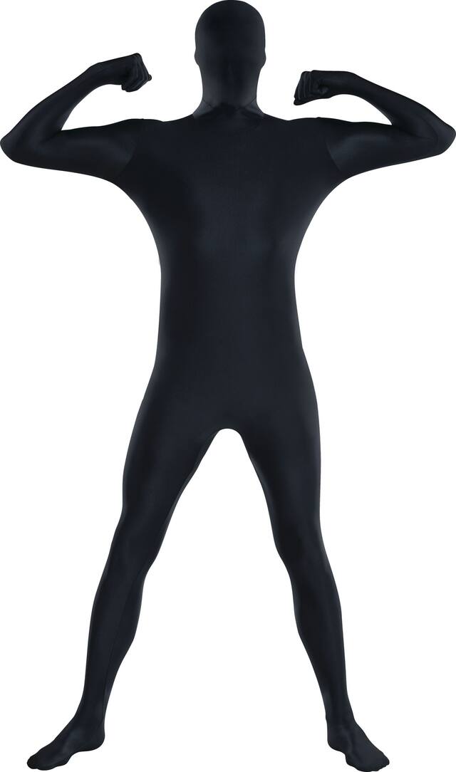 You may be interested in these similar products shown below.Adult Black Partysuit is made of thin breathable stretchy spandex that covers the entire body including hands, face and feet