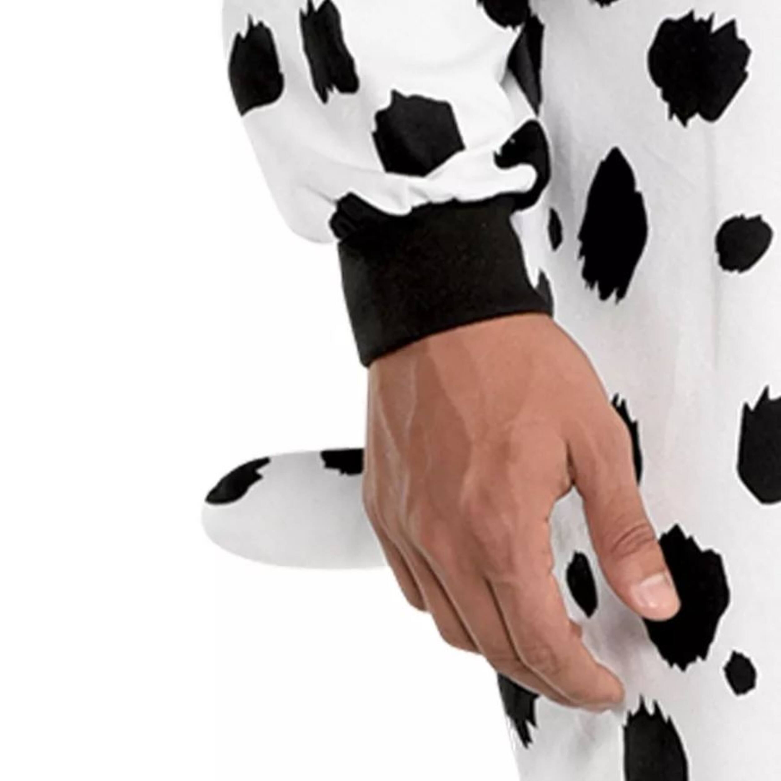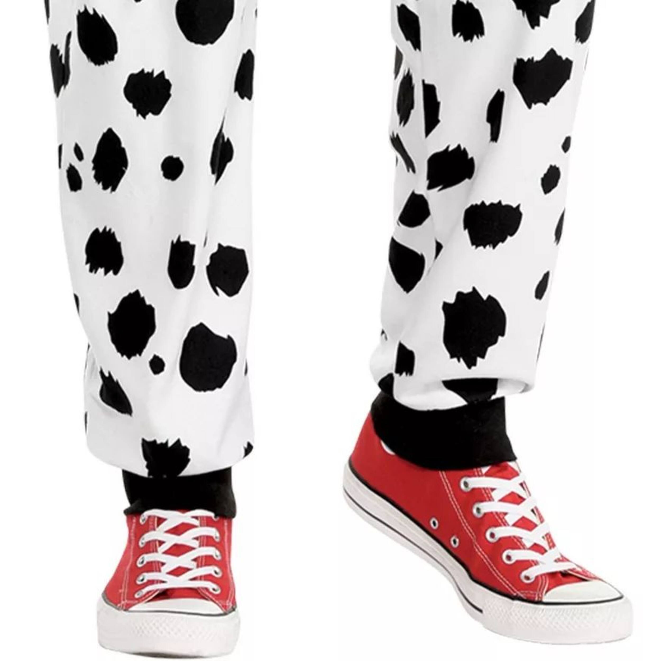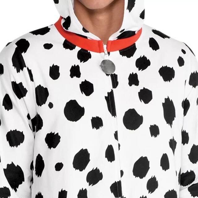 You may be interested in these similar products shown below.Transform into a beloved character from Disney's 101 Dalmatians with this black and white jumpsuit. Perfect for Halloween, this cozy one-piece costume features a red collar, a stuffed tail, and plush ears attached to the hood. Enjoy the ultra-soft fleece material that mimics a Dalmatian's iconic coat, ensuring both comfort and style.