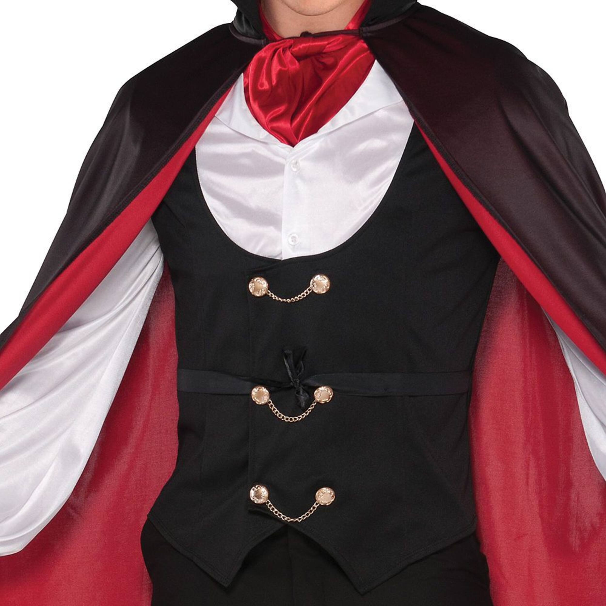 You may be interested in these similar products shown below.Adult True Vampire Costume features a Transylvanian-inspired polyester pull-on shirt with faux button and chain closure detail with attached vest