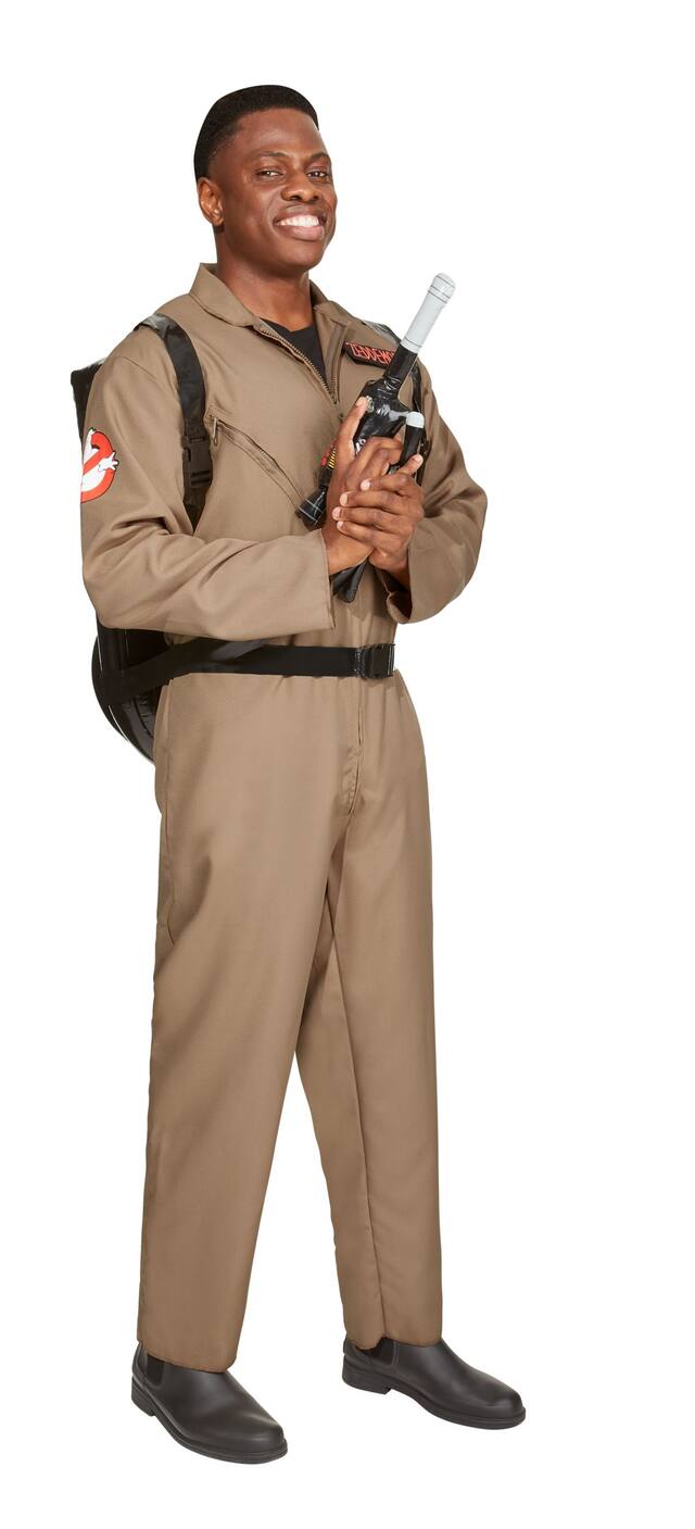 Transform into a Ghostbuster this Halloween with the Men's Ghostbusters Tan Jumpsuit and Proton Pack Backpack. This officially licensed costume features a beige jumpsuit with functional zippers and a Ghostbusters logo, making it perfect for fans of the iconic movie. Complete your look with the included Proton Pack backpack and interchangeable name patches.