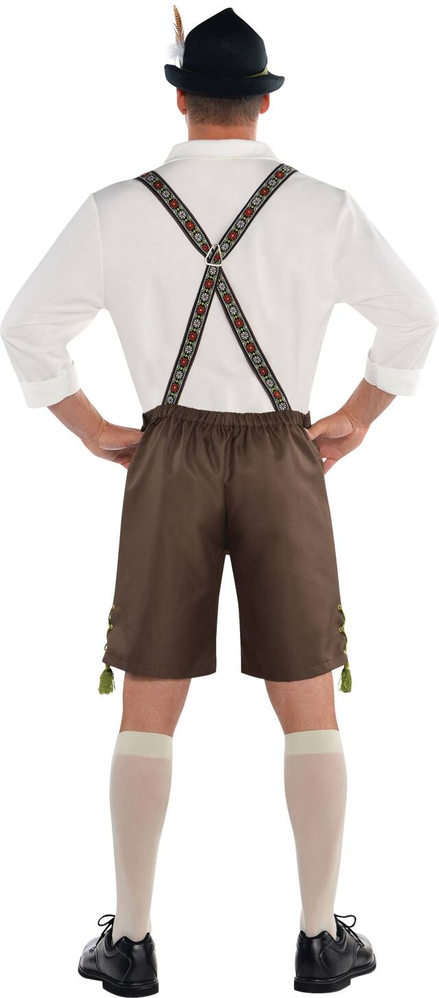 Adult Mr Oktoberfest Costume features brown leder, and hosen with embroidery-printed suspenders