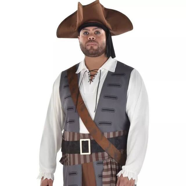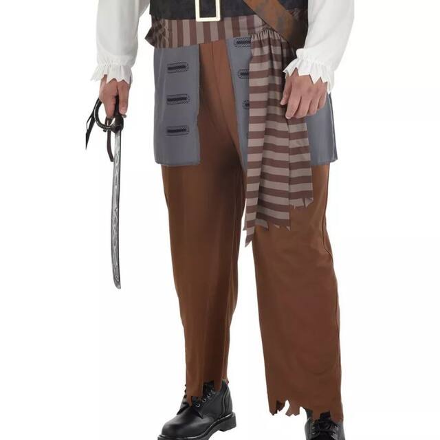 Embrace the spirit of adventure with the Men's Pirate Brown and White Outfit. Perfect for Halloween, this costume includes a shirt, pants, and hat, ensuring you look the part for any swashbuckling event. Available in assorted sizes, it's designed to make your pirate persona come to life.