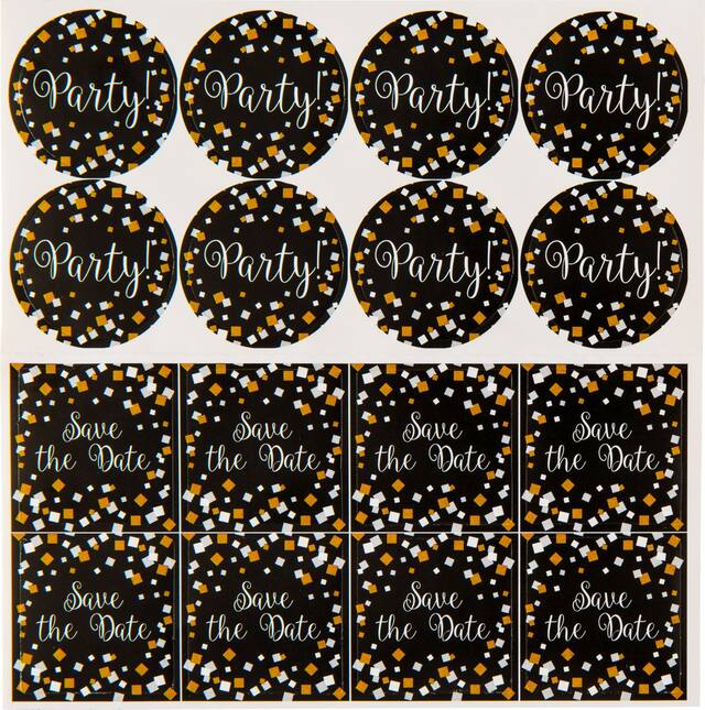 Includes a matching save-the-date sticker with each invite and seal the silver envelope with the sticker seal