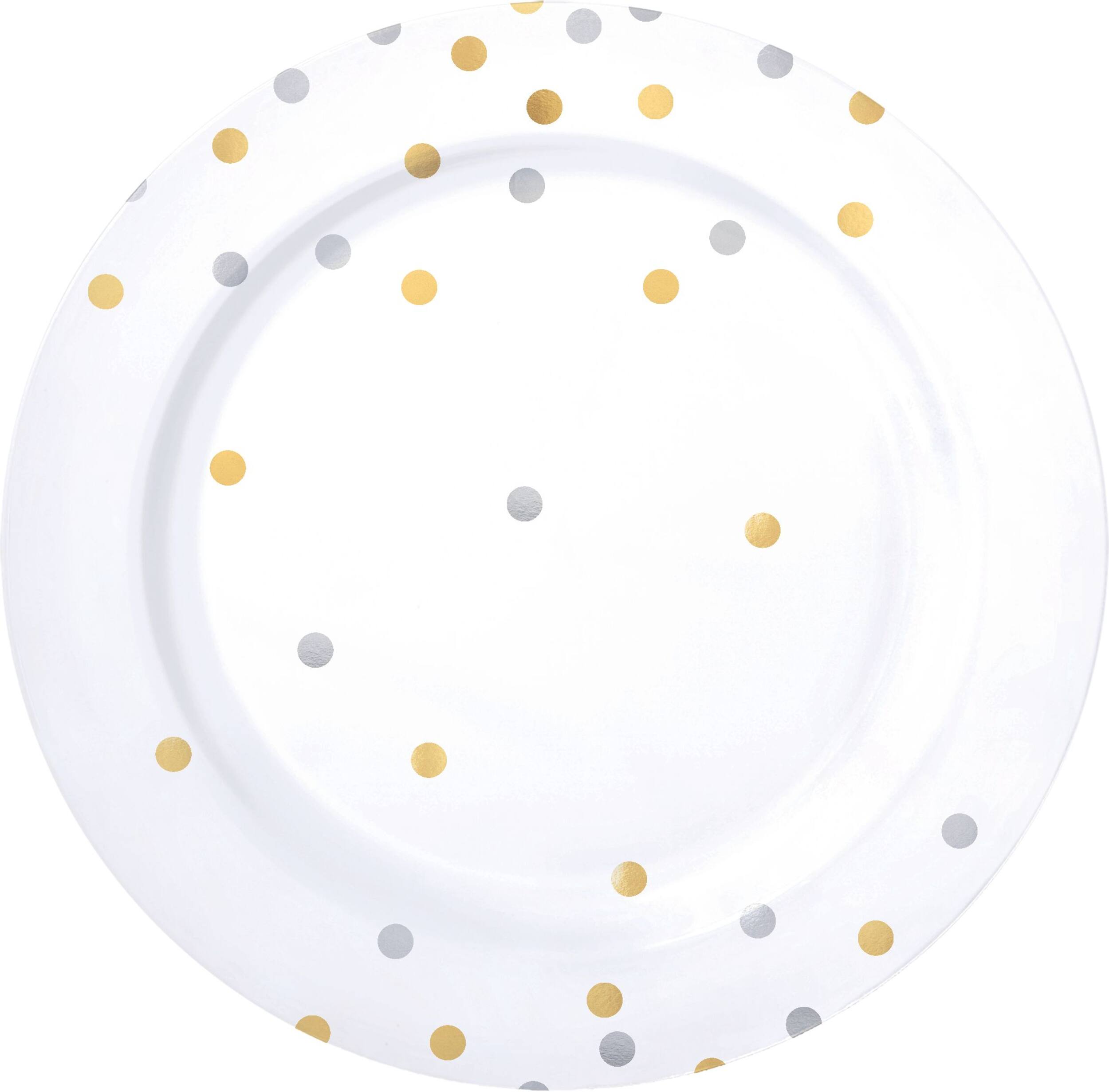 You may be interested in these similar products shown below.Metallic Gold and Silver Confetti Premium Plastic Dinner Plates feature a metallic gold and metallic silver dot pattern
