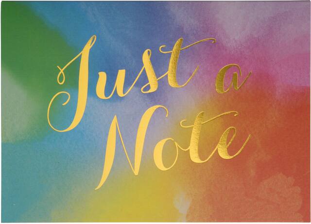 You may be interested in these similar products shown below.Metallic Rainbow Watercolour Note Cards come with "Just a Note" in metallic gold on the front and a rainbow watercolour background
