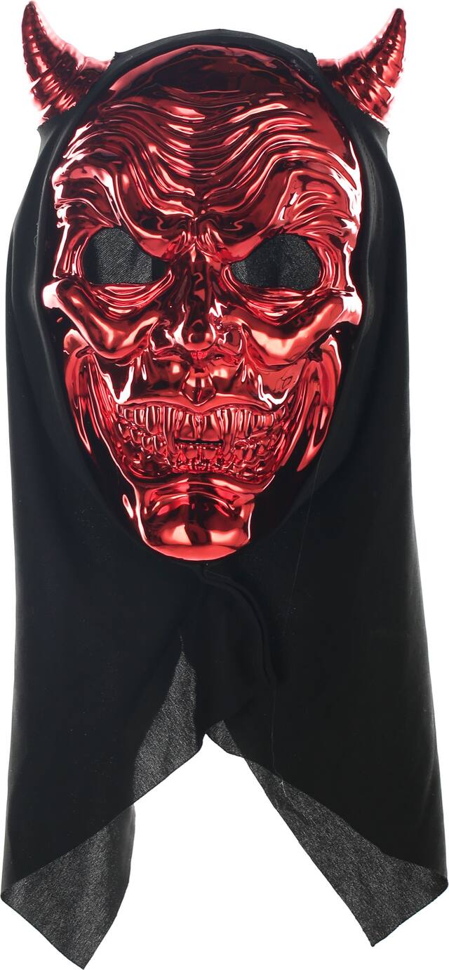 This eye-catching red accessory is part of an over-the-head black cowl which turns your everyday black shirt and pants into a terrifying and devilish look