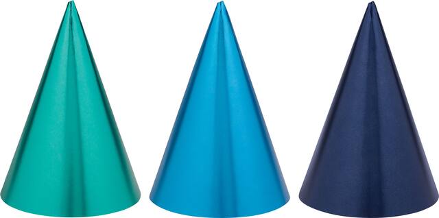 You may be interested in these similar products shown below.Metallic Shades of Blue Party Hats are a happy, shiny addition to your party outfits