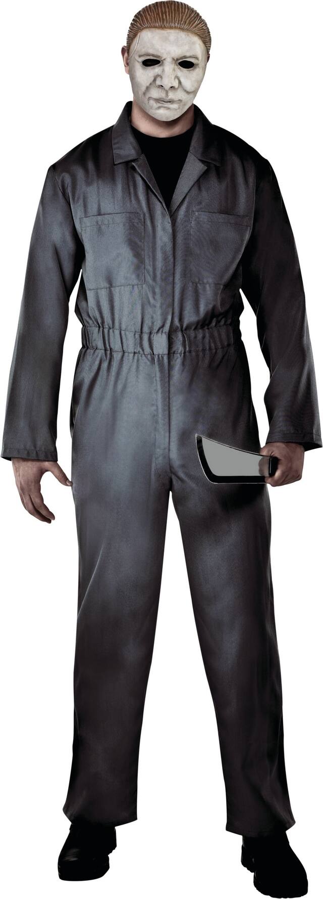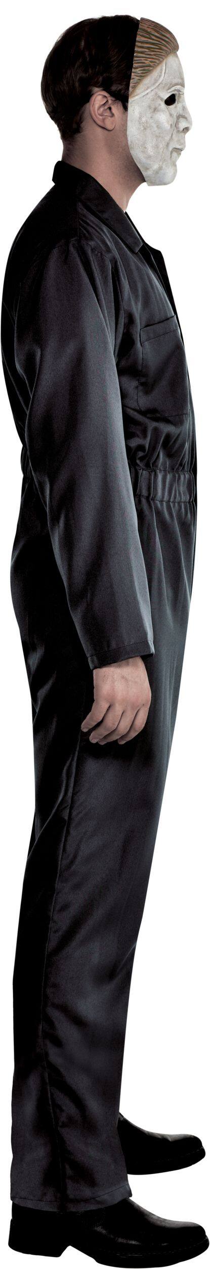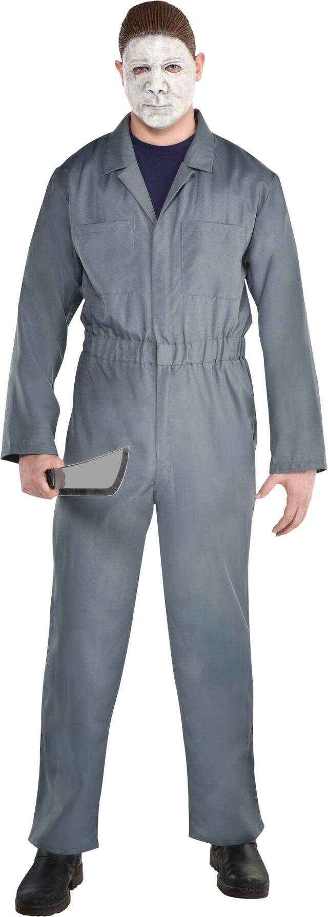 Transform into the iconic horror character with the Men's Halloween Michael Myers Grey Jumpsuit with Mask. This officially licensed costume from Universal Studios Halloween II features a dark grey jumpsuit and a detailed mask, perfect for creating a chilling presence at any Halloween event.