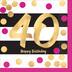Printed with an eye-catching "40" written in metallic gold, polka dots, and a black and white striped background, these small paper napkins are fit for a sparkling celebration