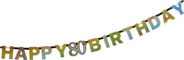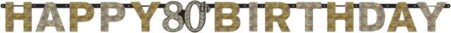 Attached gold and silver cut-outs read "Happy 80th Birthday" for a cheerful headline