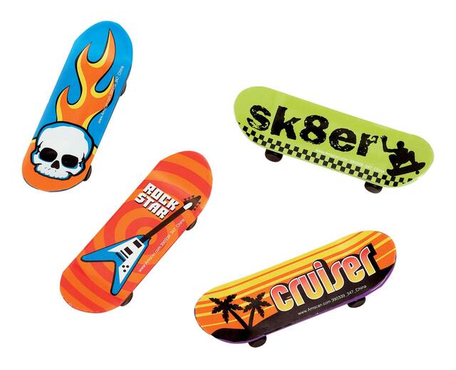 These miniature skateboards from Amscan will have kids at your child's party riding the waves of fun. The mega pack includes 30 miniature skateboards in 4 attention grabbing designs like skull prints and guitars that are ideal for any sports themed kids party. The pack provides excellent value and an interesting giveaway favours that your little guests are sure to cherish.