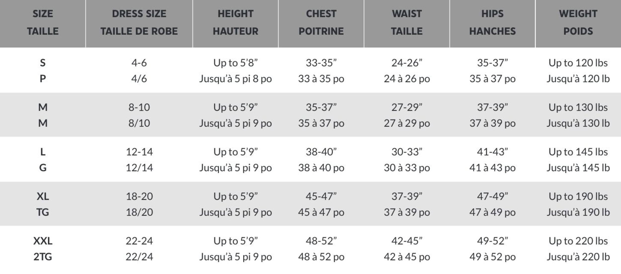 Available in a variety of women's sizes