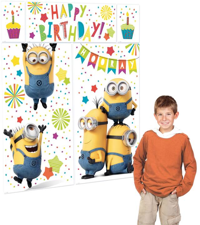 You may be interested in these similar products shown below.Minions Scene Setter includes 2 small posters with cupcakes and 2 large posters that feature various Minions, and a banner that reads "Happy Birthday!"