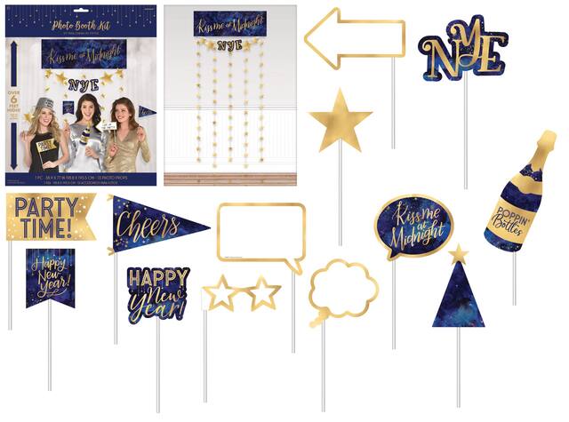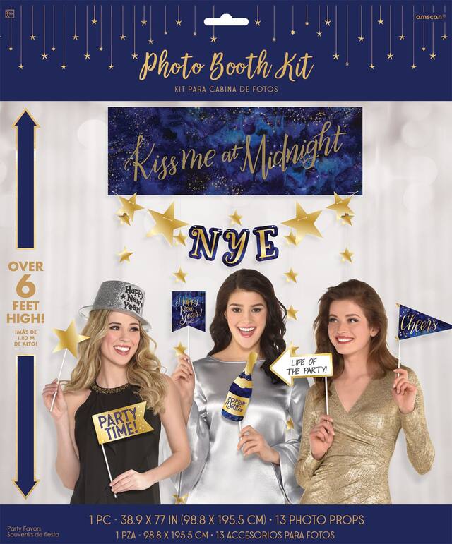 Make your New Year's party magical by setting up a photo booth with this backdrop and prop set