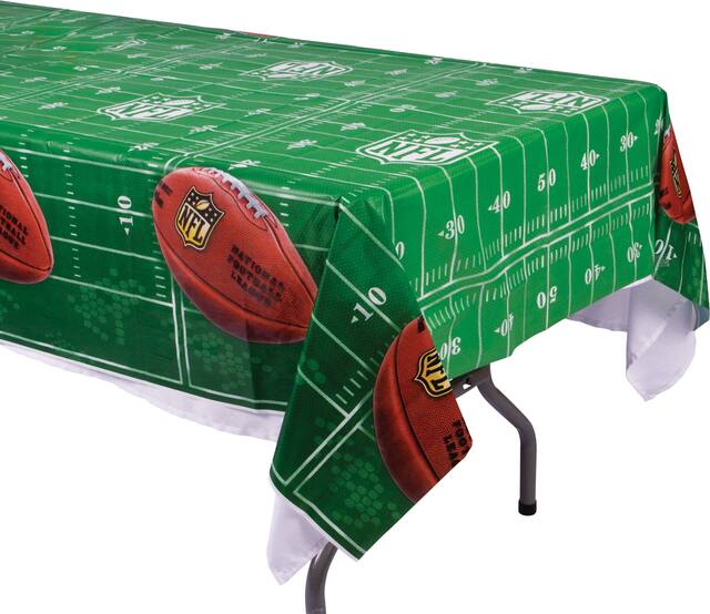 You may be interested in these similar products shown below.NFL Drive Table Cover features footballs with the NFL logo