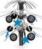 Features an eye-catching fountain of black and silver foil, complete with blue plastic star-shaped cutouts and miniature hockey pucks with the official NHL logo