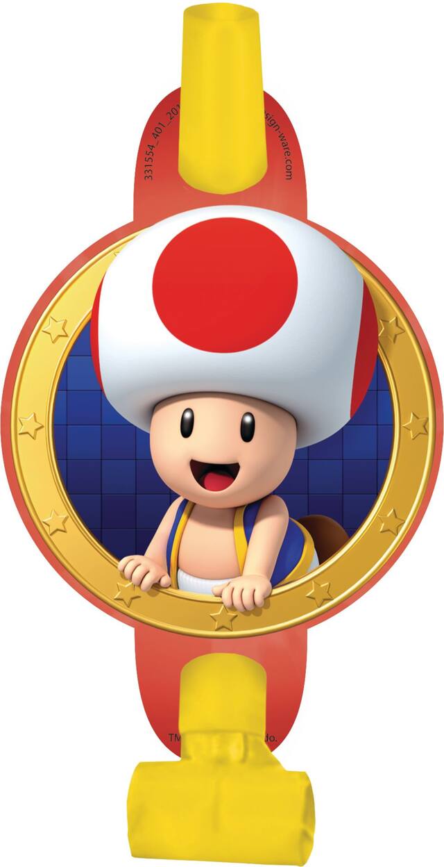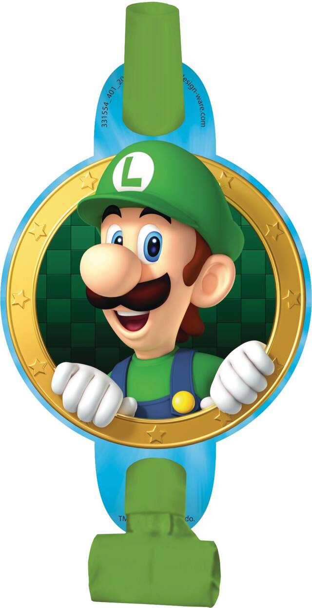 Super Mario Party Blowouts will bring the festive fun to any celebration. The 8 count package includes party favor blowouts decorated with images of Mario, Luigi and the Mushroom Kingdom crew. Guests can use the approximately 5-inch long blowers at the party or take them home as party swag. The birthday boy or girl will love blowing out the candles through Mario themed blower while friends cheer. Officially licensed Nintendo party supplies.