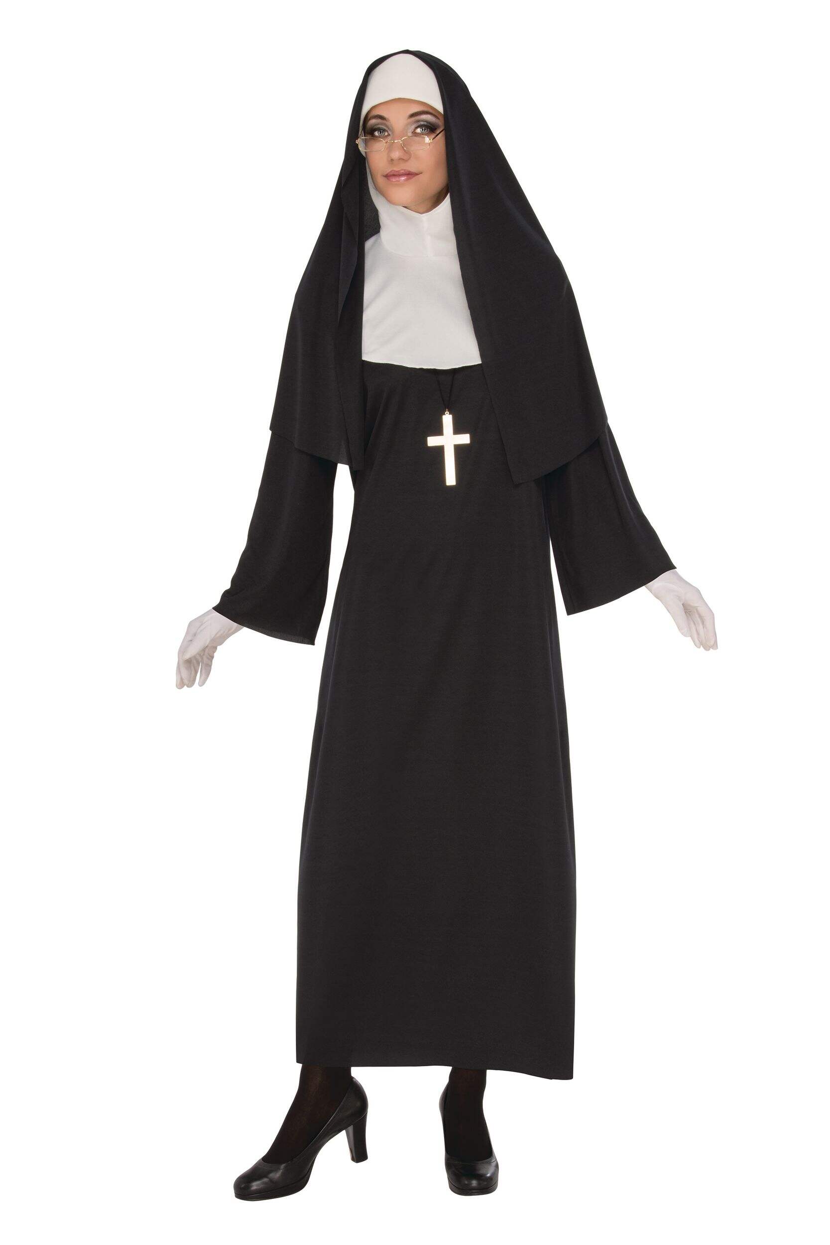 Transform into a classic nun with this Halloween costume, complete with a black robe and veil. Perfect for themed parties or spooky events, this outfit ensures you look the part with its authentic design and included accessories.