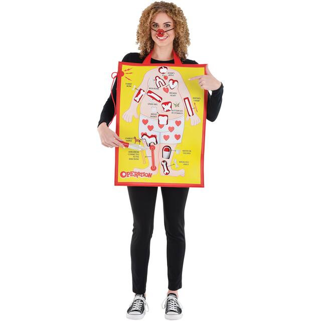 This humorous costume features an easy to wear gameboard tunic as well as an attached pair of tweezers to attempt to remove the game pieces