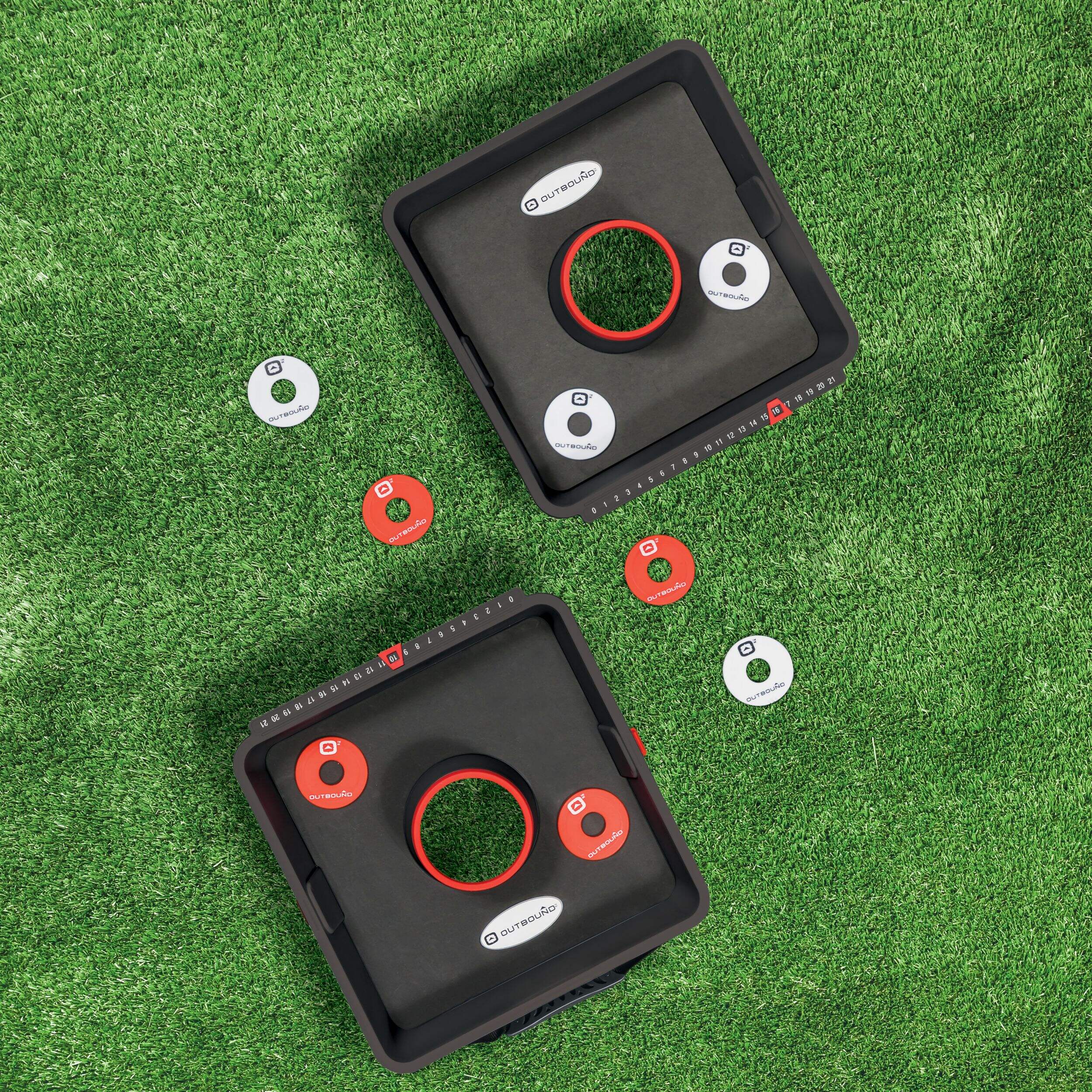 The Outbound Outdoor Portable Washer Toss Game offers a simple way to enjoy competitive fun with friends and family. This washer toss set includes all of the required washers, two scoring boards, and a full set of game instructions, ensuring that you have everything you need to get started. The set is designed to be easy to set up and put away, and is built from durable materials, making it a great option to take on camping trips or park visits.