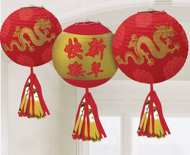 The perfect finishing touch to welcome the Lunar New Year. This pack of three deluxe paper lanterns from Amscan feature auspicious patterns, festive colors and tassels - making them ideal hanging decorations for celebrating Chinese New Year with family. Crafted from quality hot-stamped paper, the lanterns will add a subtle sense of occasion without overpowering the space. Simply hang them from the ceiling or place on a shelf to imbue your home with a cheerful, festive atmosphere this new year.
