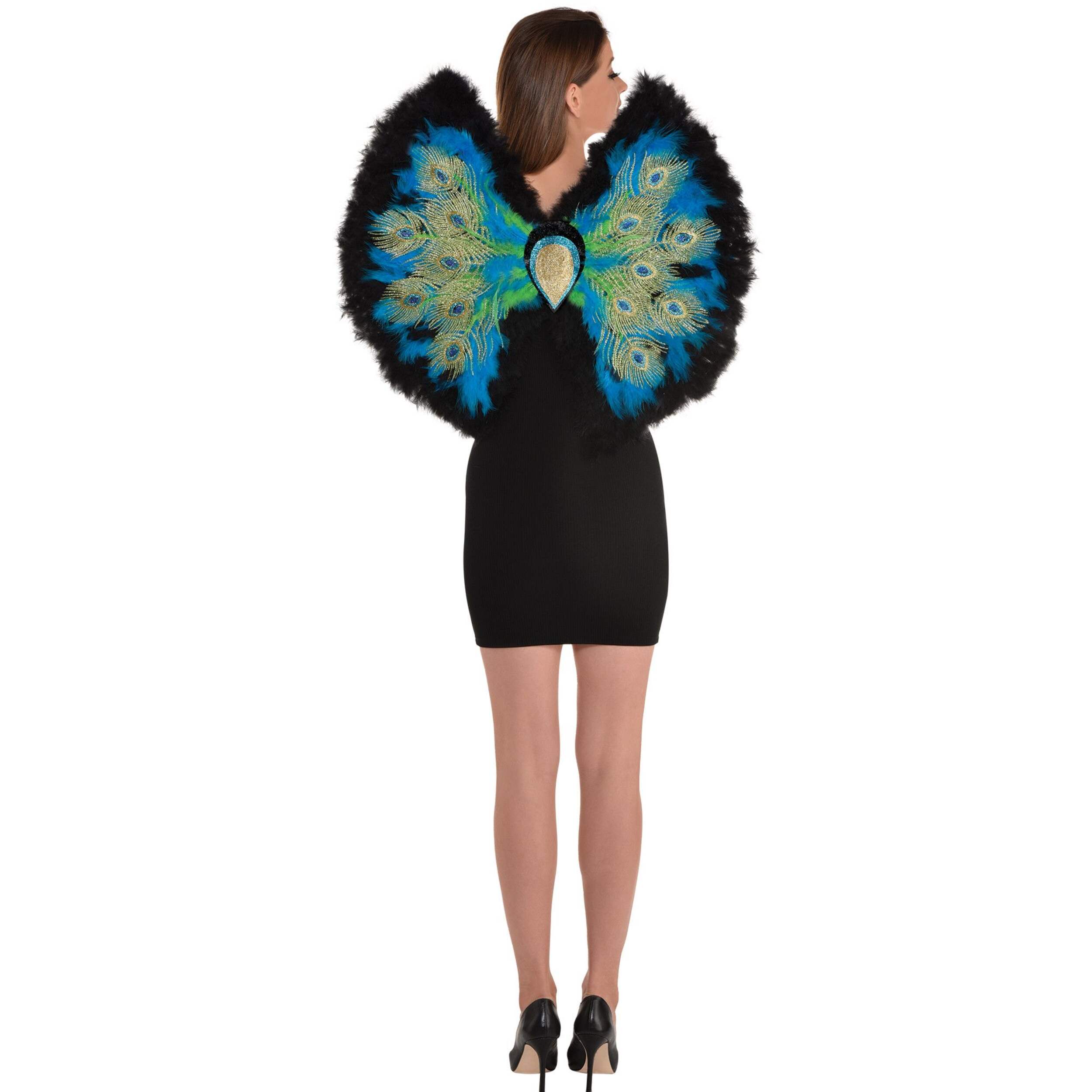 Made from real rooster feathers, these brilliant wings are designed for a realistic peacock look, "eyes" and all
