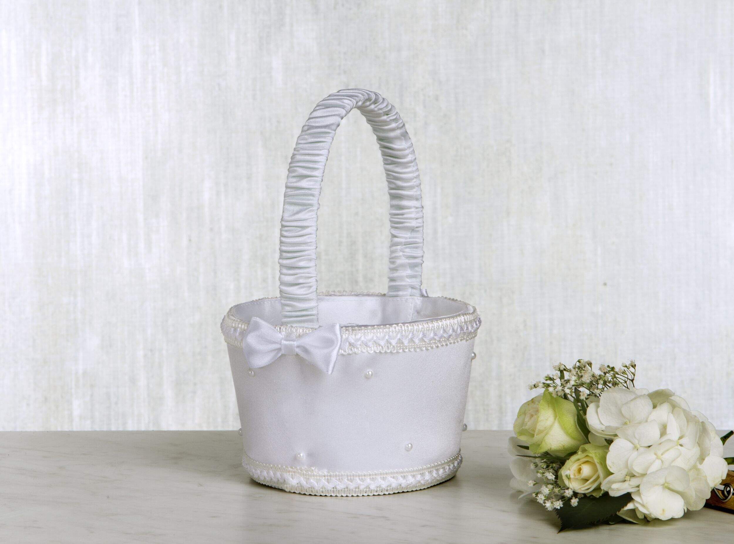 White Pearl Flower Girl Basket matches perfectly with your white wedding dress